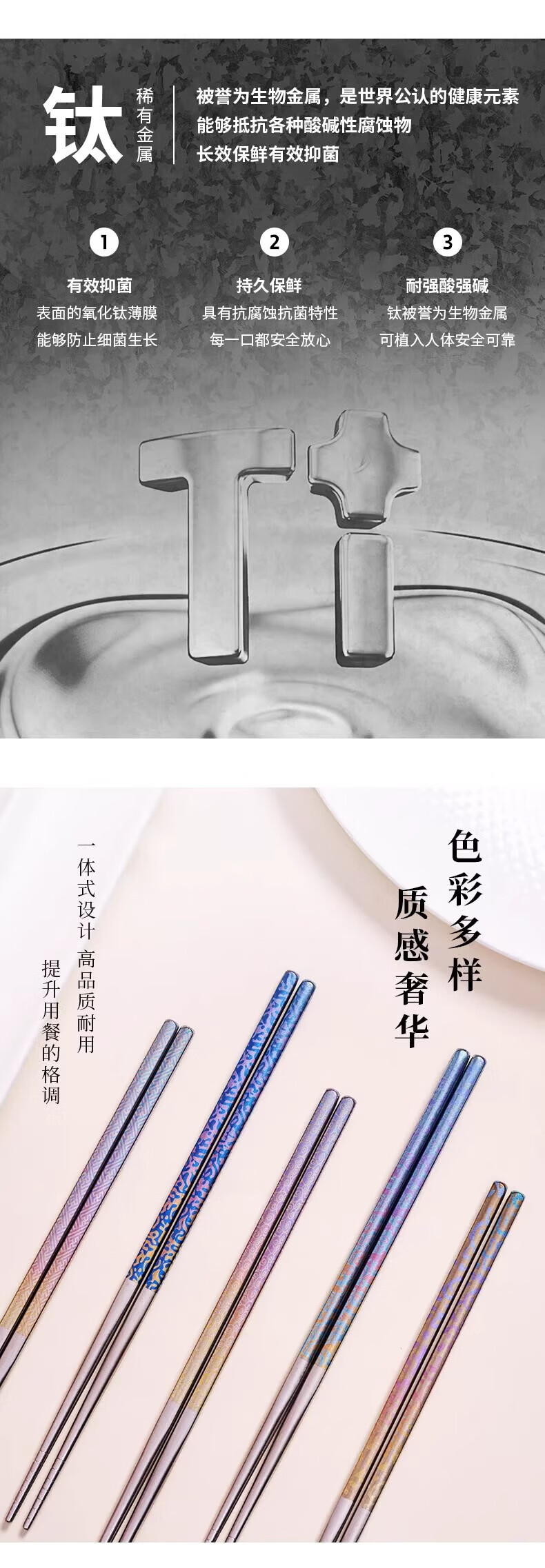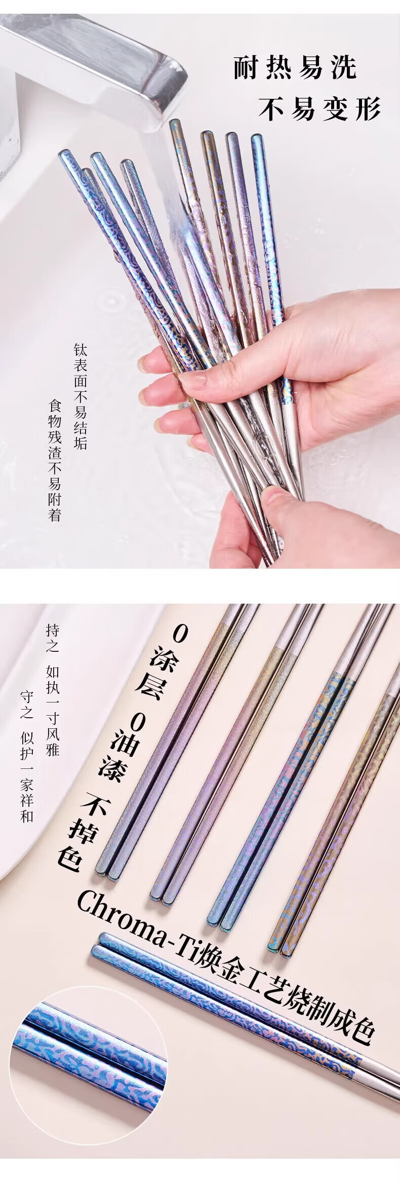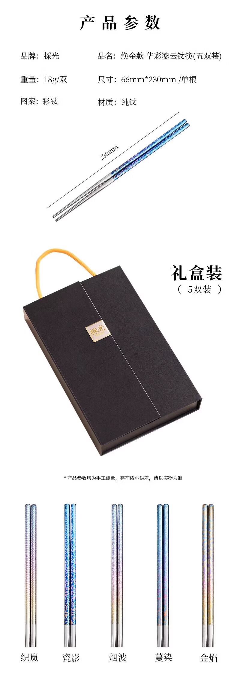 採光华彩鎏云钛筷(五双装)/盒 筷子