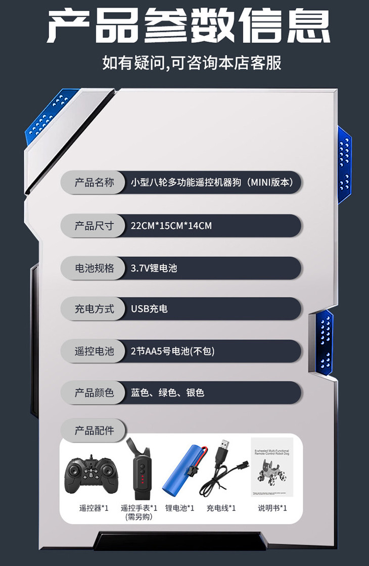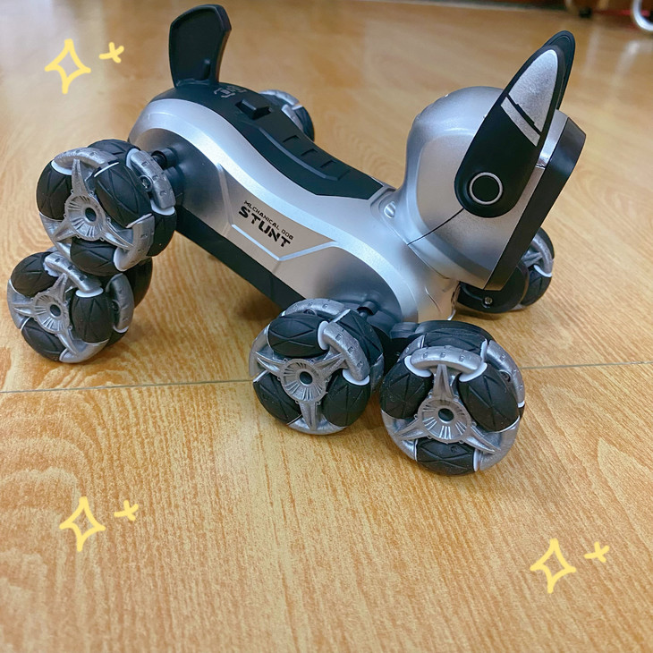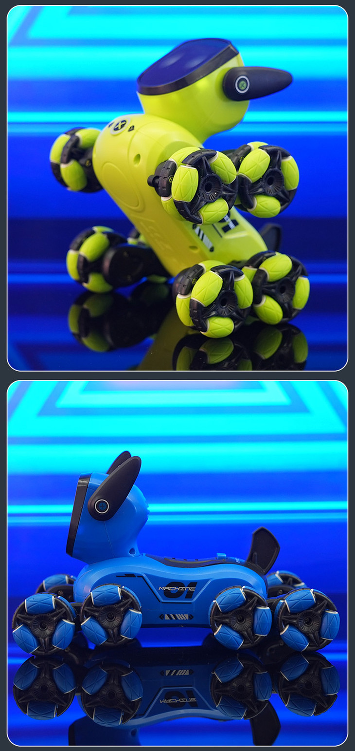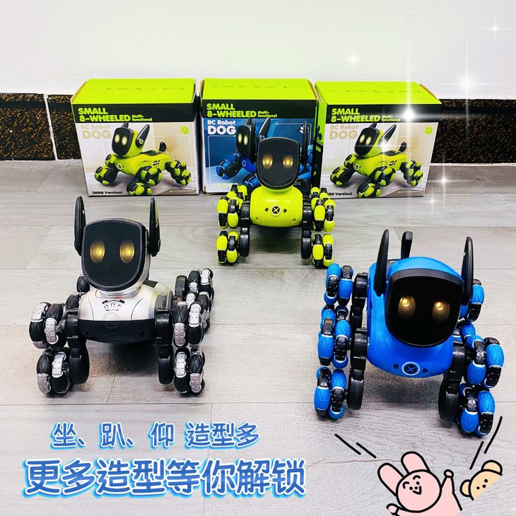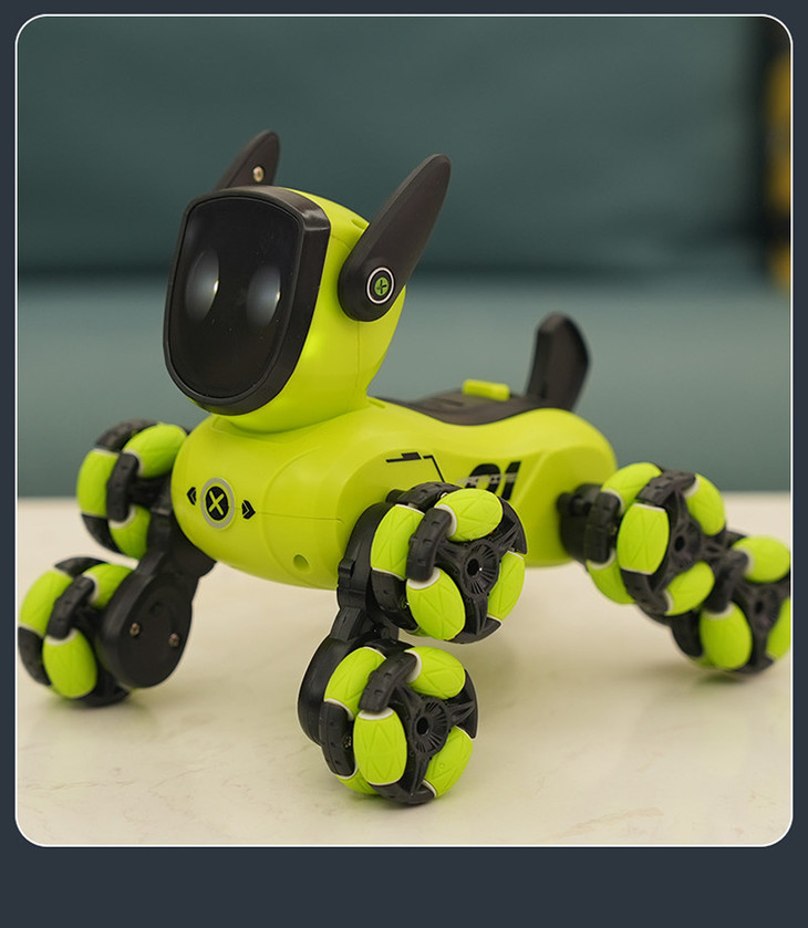 绝对的颜值与实力并存,科技感十足的小狗造型,酷炫好看 ✨2.4G无线超远距离遥控 ✨8个耐磨灵活的麦克纳姆轮,抗撞抗摔! 家里、小区、公园、适应各种场景,凹凸路面都能稳稳越过,操控性能以及脱困能力max ❗ ❗ 👐多方向行驶|前后臂翻越|旋转爬坡|高姿巡逻|低趴潜行 各种花式炫酷玩法,一切行动由你指挥 简直就是男孩子的梦中情车呀🏎