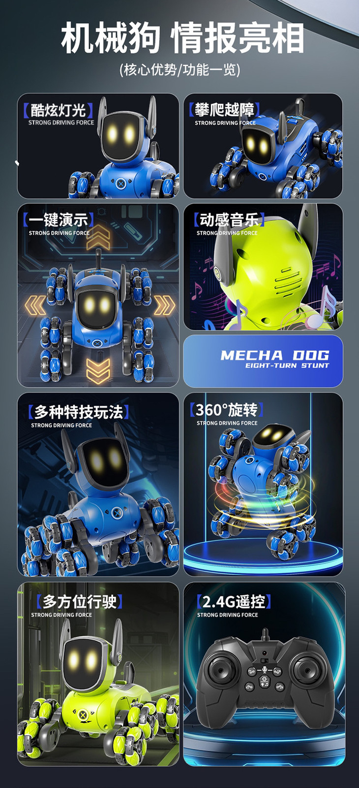 设计师加鸡腿 简直泰酷啦❗ 王炸礼物💥太强了 #八轮特技机械狗 没有小男孩拒绝得了 ❗ 2.4G无线长距离炫酷遥控, 各种姿态、多方向行驶、灯光