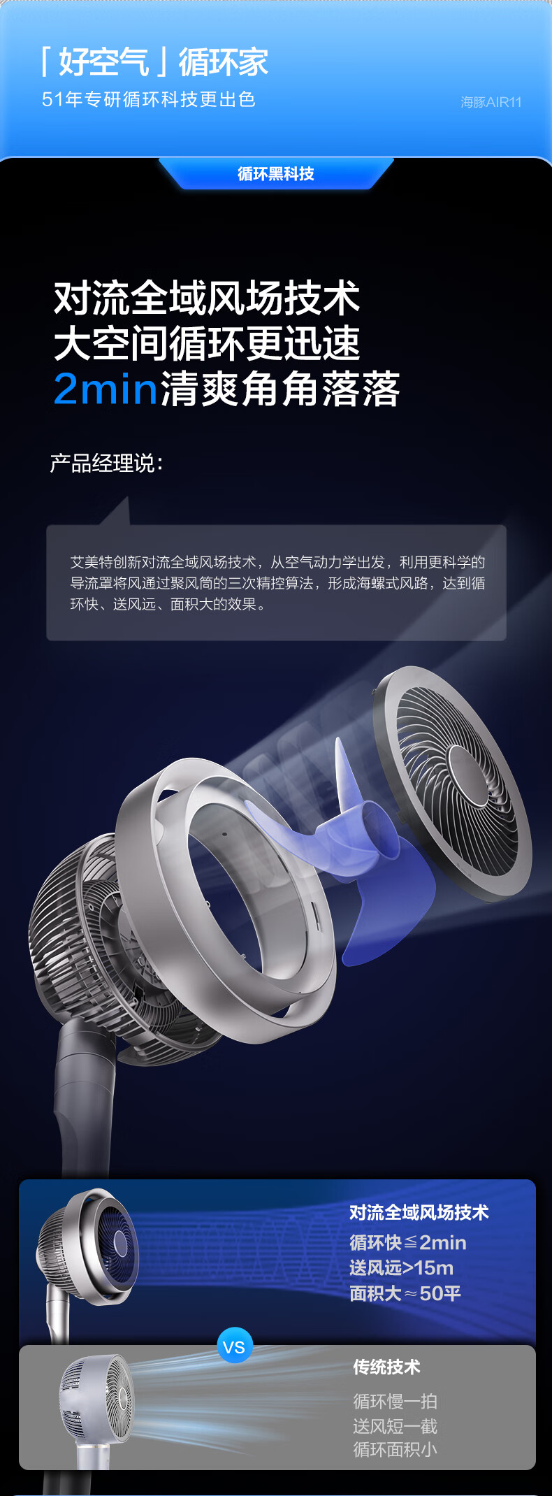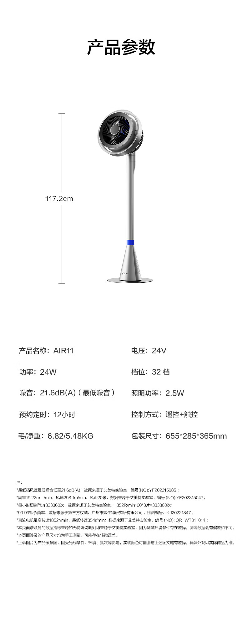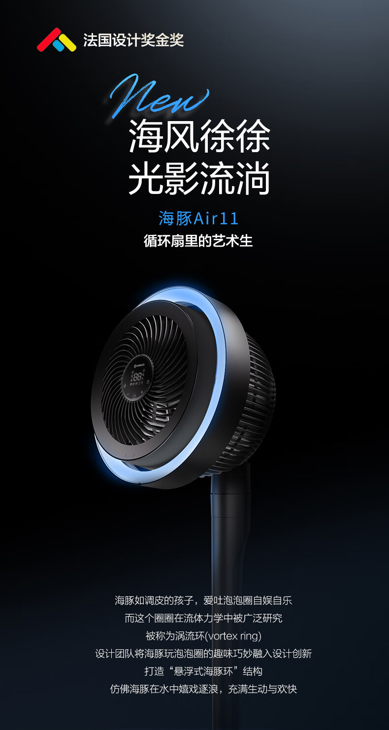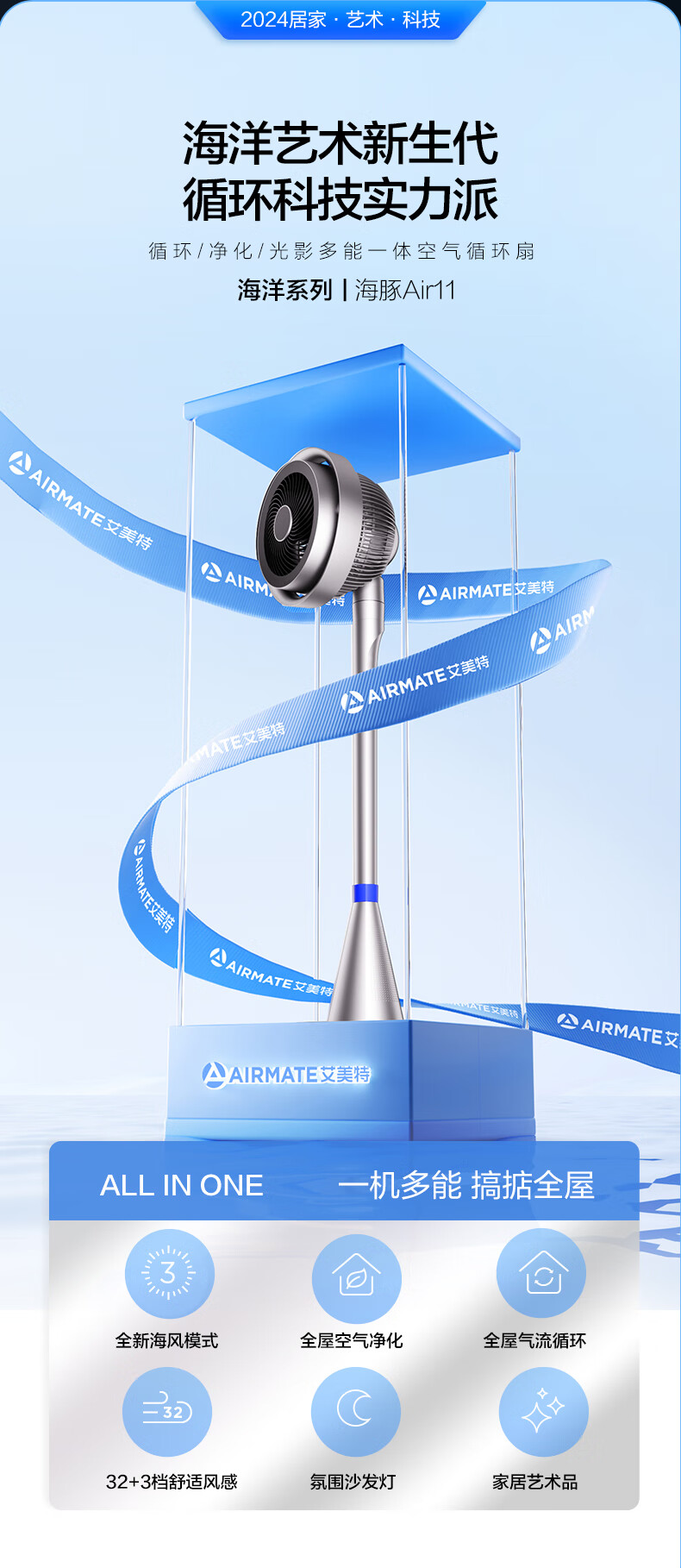 艾美特(AIRMATE)【光影一体】海豚空气循环扇等离子净化除菌32档直流变频家用节能落地扇3D立体摆头电风扇 AIR11