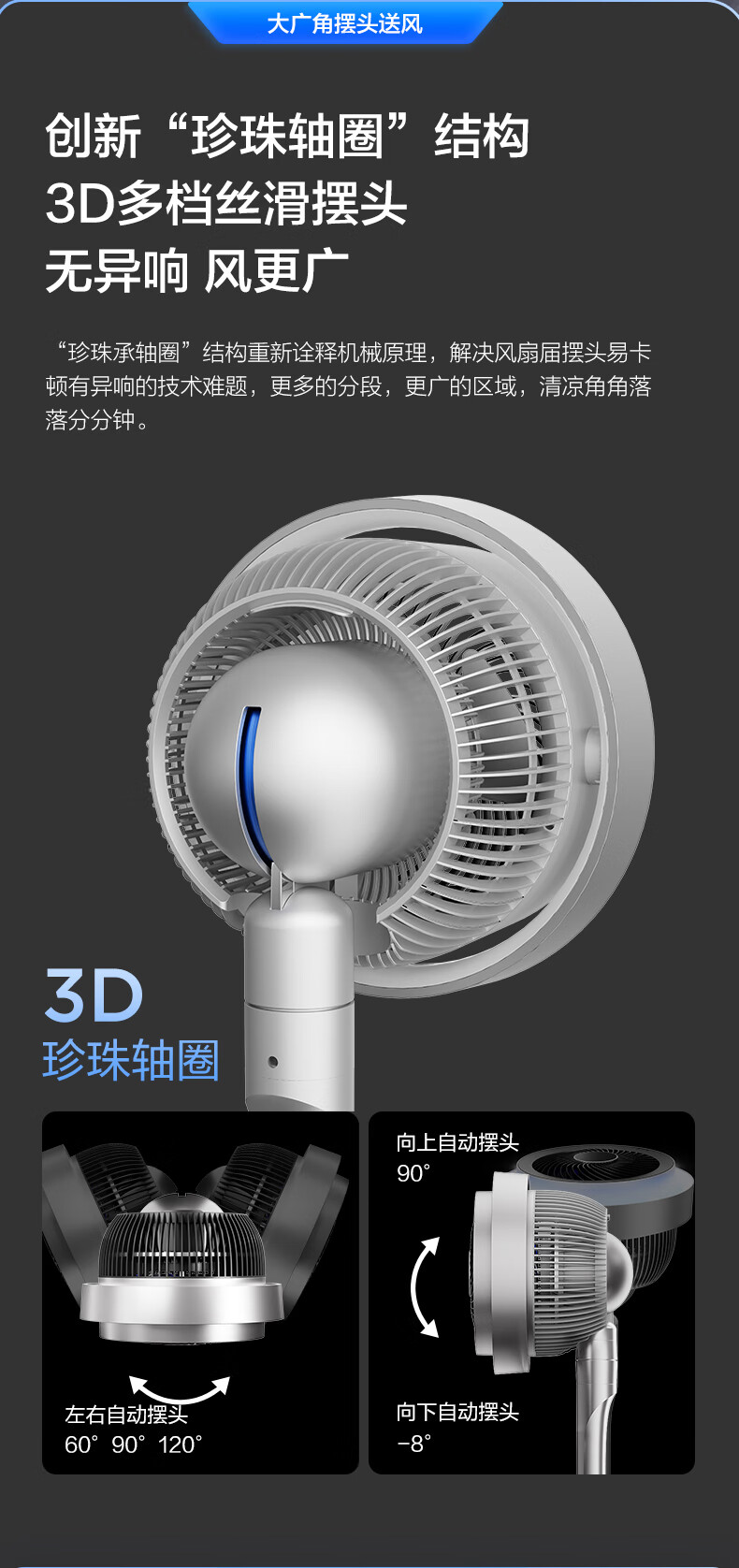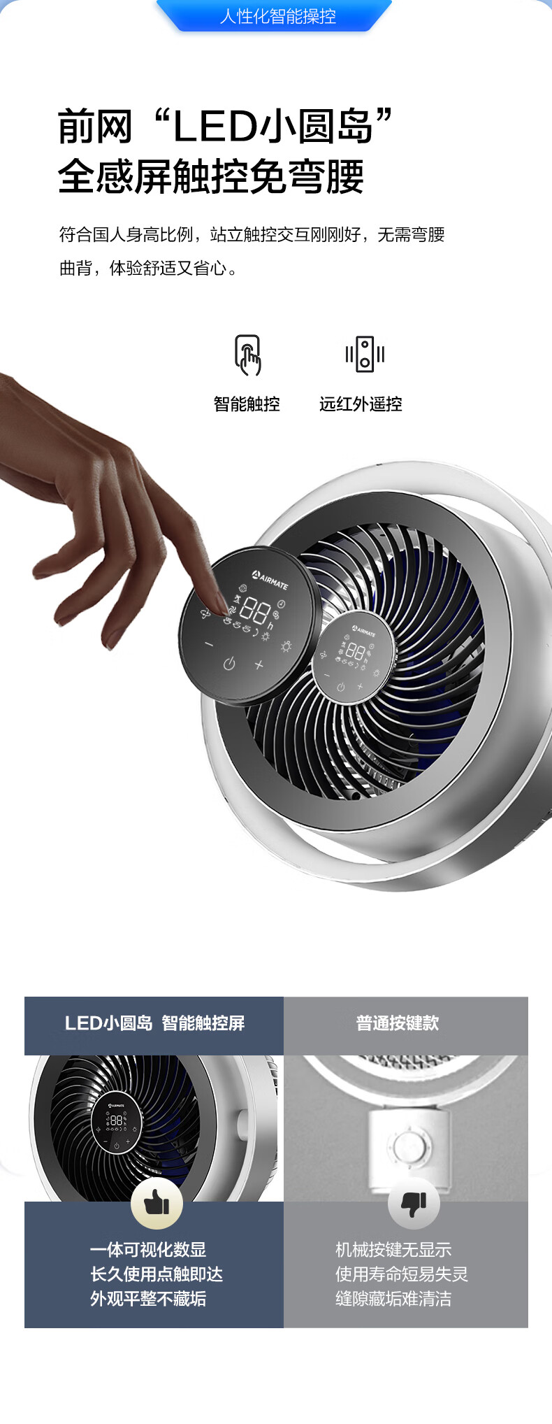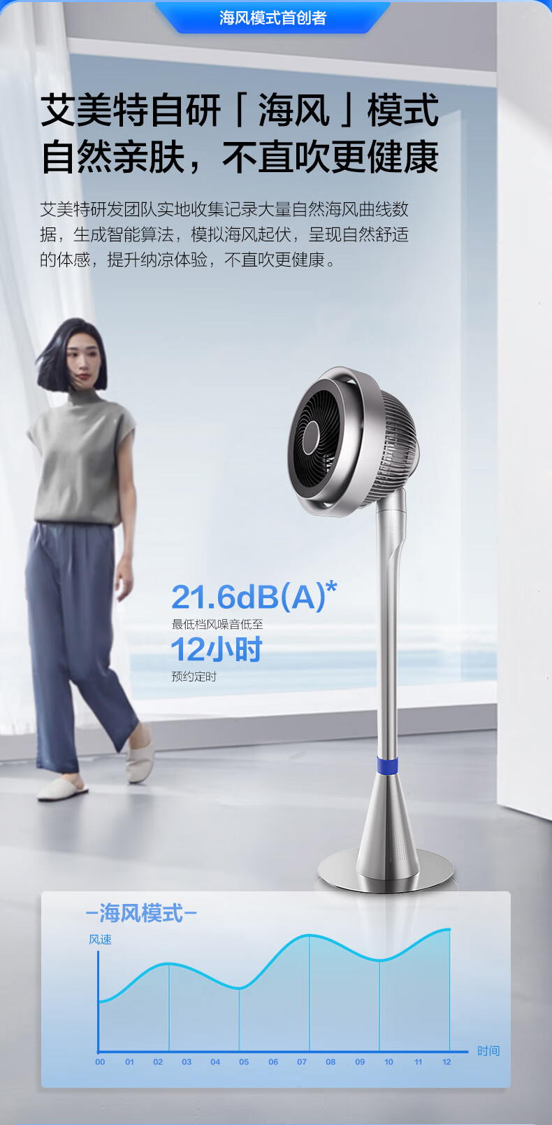 艾美特(AIRMATE)【光影一体】海豚空气循环扇等离子净化除菌32档直流变频家用节能落地扇3D立体摆头电风扇 AIR11