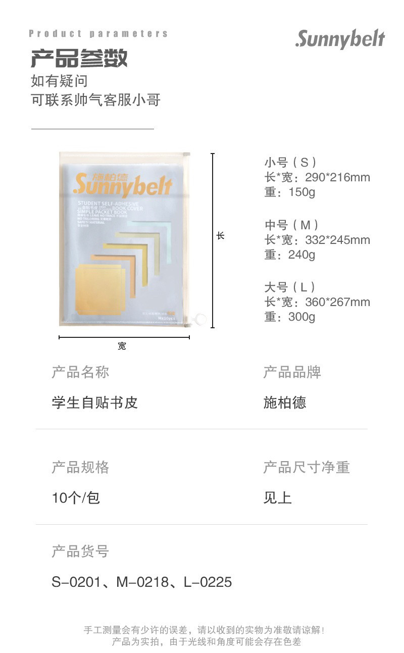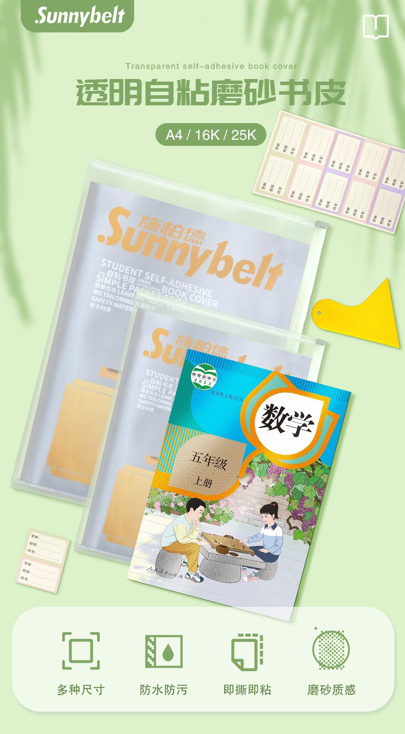 开学季福利!【随赠刮板+姓名贴+收纳袋】德国施柏德书皮sunnybelt大中小各10张书套透明自粘磨砂书皮纸包书纸包书膜书皮保护套书壳书套卡通可爱二三年级防水小学生一年级全套