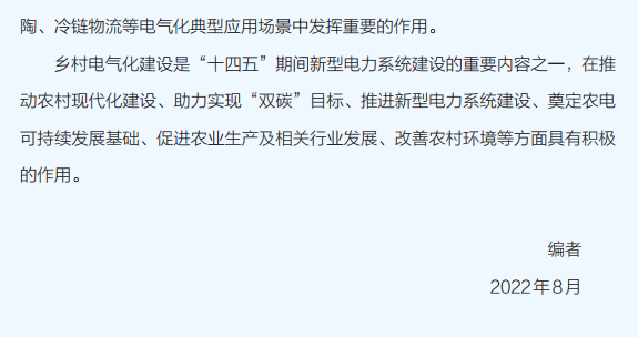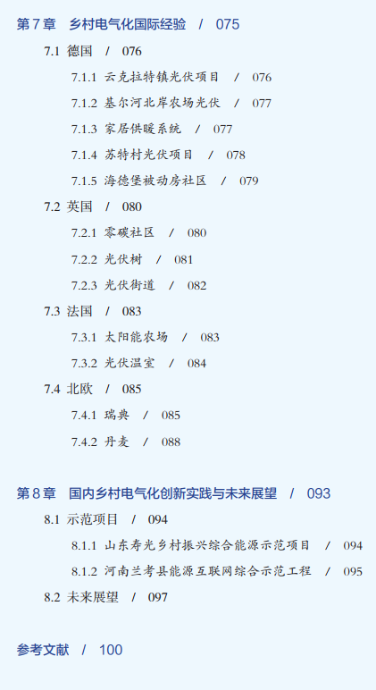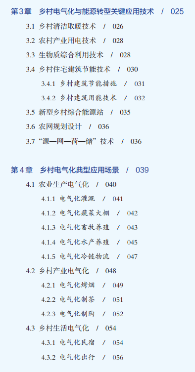 全书共 8 章,内容分别为:乡村电气化的发展背景、乡村能源供需分析、乡村电气化与能源转型关键应用技术、乡村电气化典型应用场景、乡村电气化的商业模式、乡村电气化的评价指标体系、乡村电气化国际经验、国内乡村电气化创新实践与未来展望。