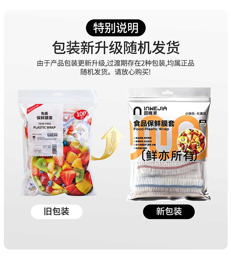 【买一次用一年】inwejia 一次性保鲜膜套 100枚/袋*4 食品级家用保鲜袋,自带松紧口浴帽式保鲜膜套,防尘防虫免手撕,方便快捷,多盘通用