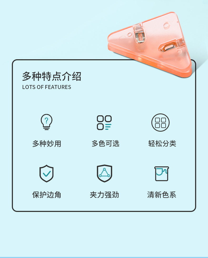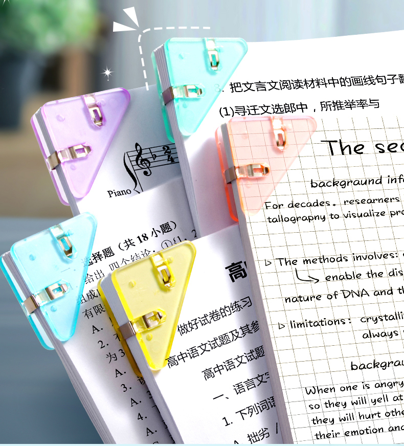 开学福利!【随机20个】混色装三角夹边角夹试卷夹三角文件夹透明试卷收纳整理神器资料夹子卷子夹学生书夹病例办公用品体检票据夹长尾夹