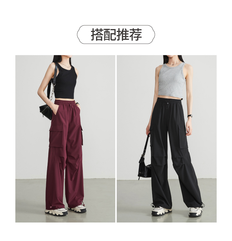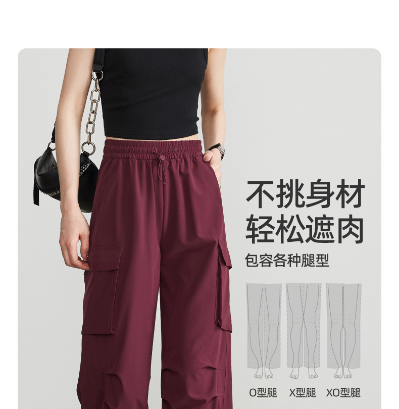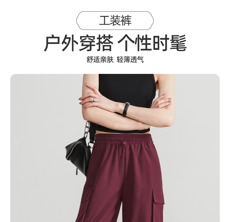 【勃肯第酒红-工装裤】逸阳夏轻薄宽松直筒束脚运动休闲裤子1212