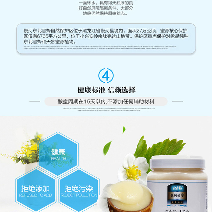 【农垦 黑龙江】北大荒 农垦食品可溯源 东北黑蜂 纯天然 椴树雪蜜 1kg/瓶