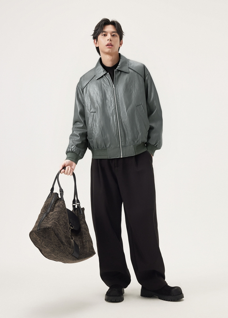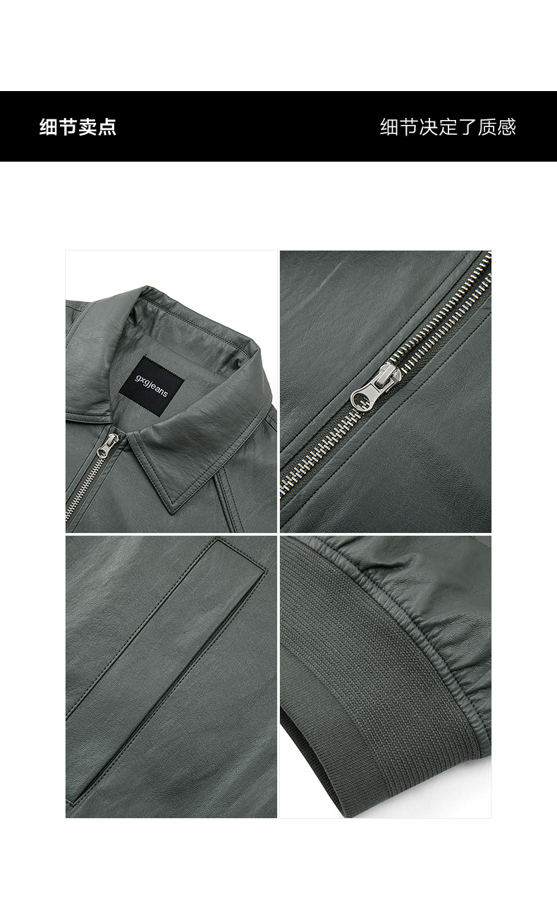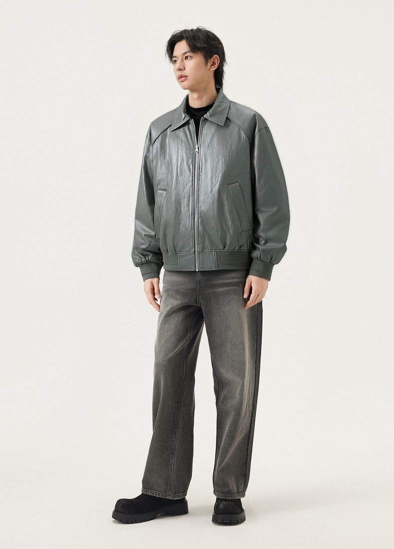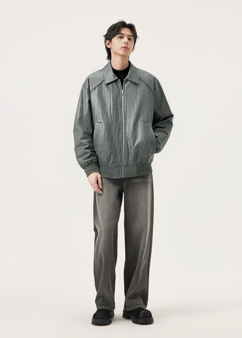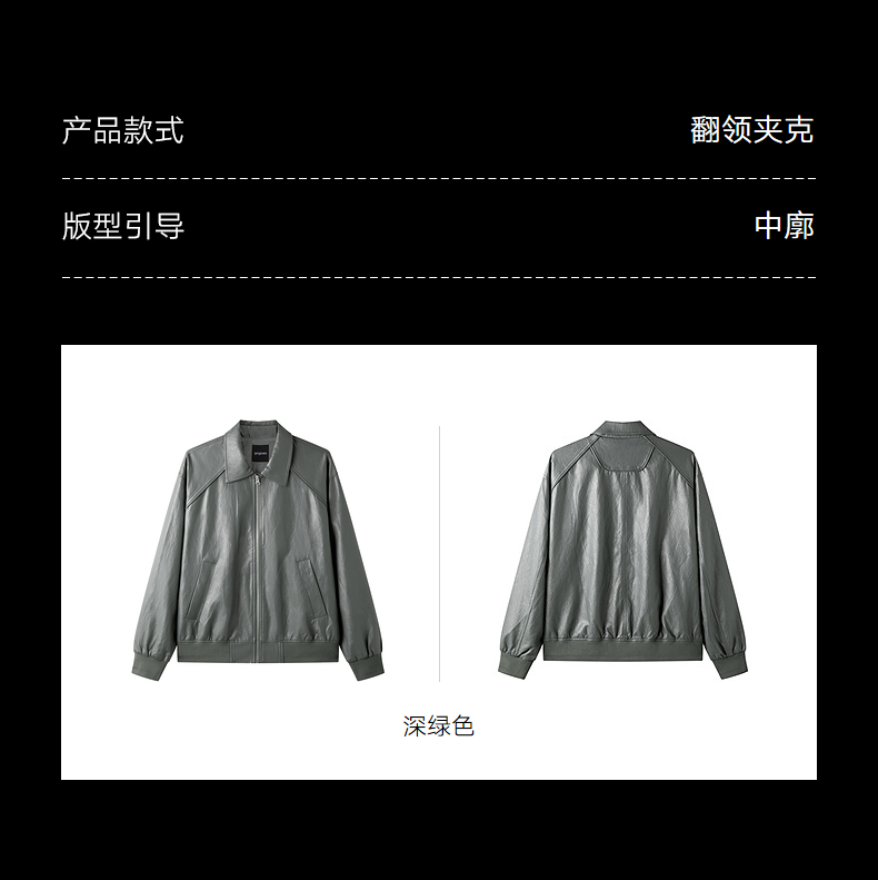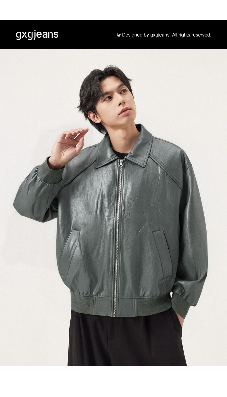 gxg.jeans男装 深绿色pu皮时尚宽松美式翻领夹克外套 25年冬