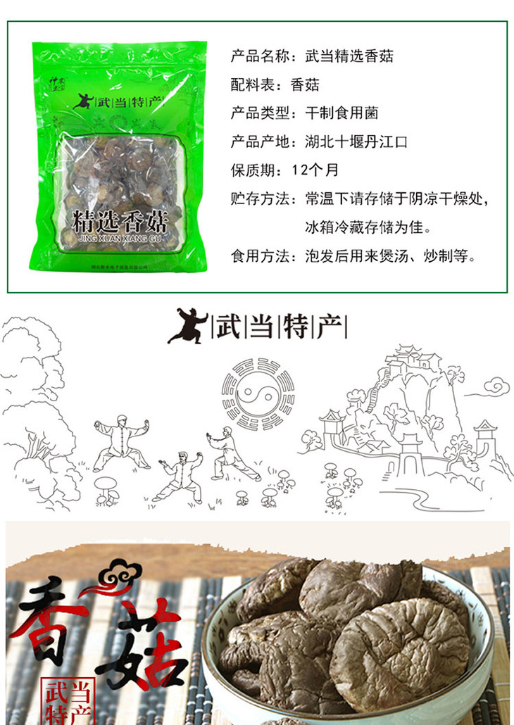 丹江口 神农武当 精选香菇350g/袋 十堰