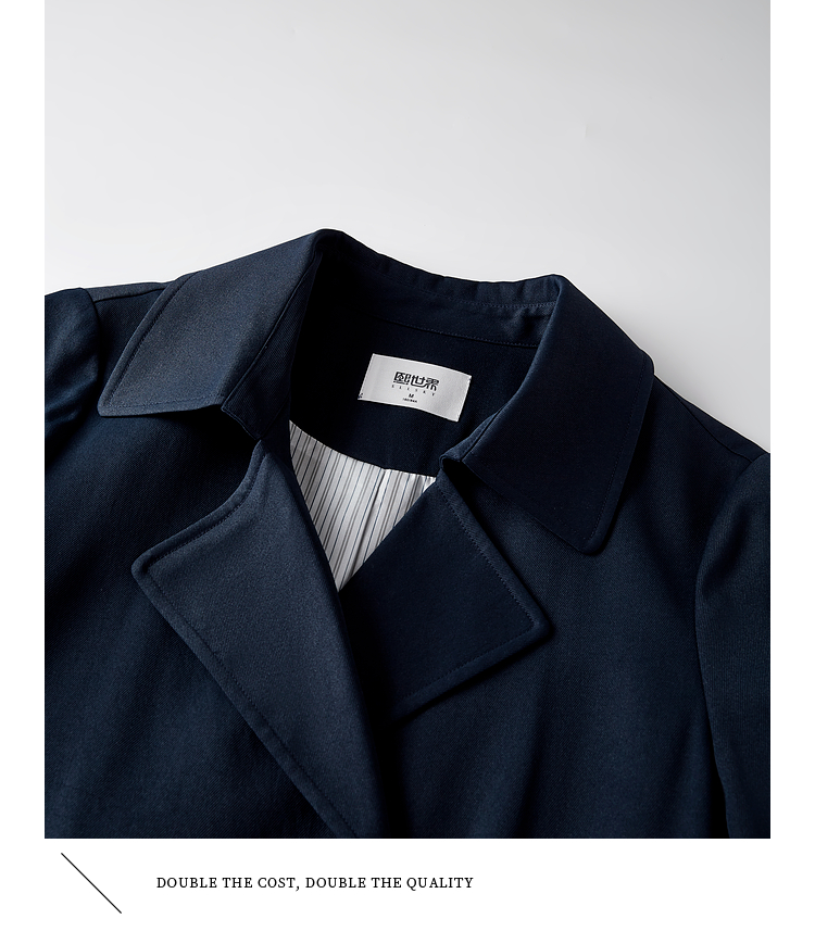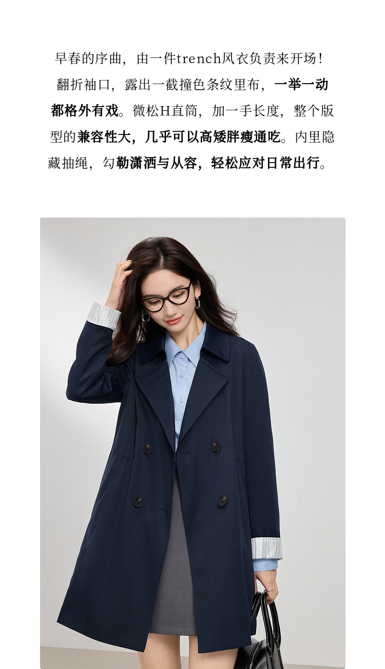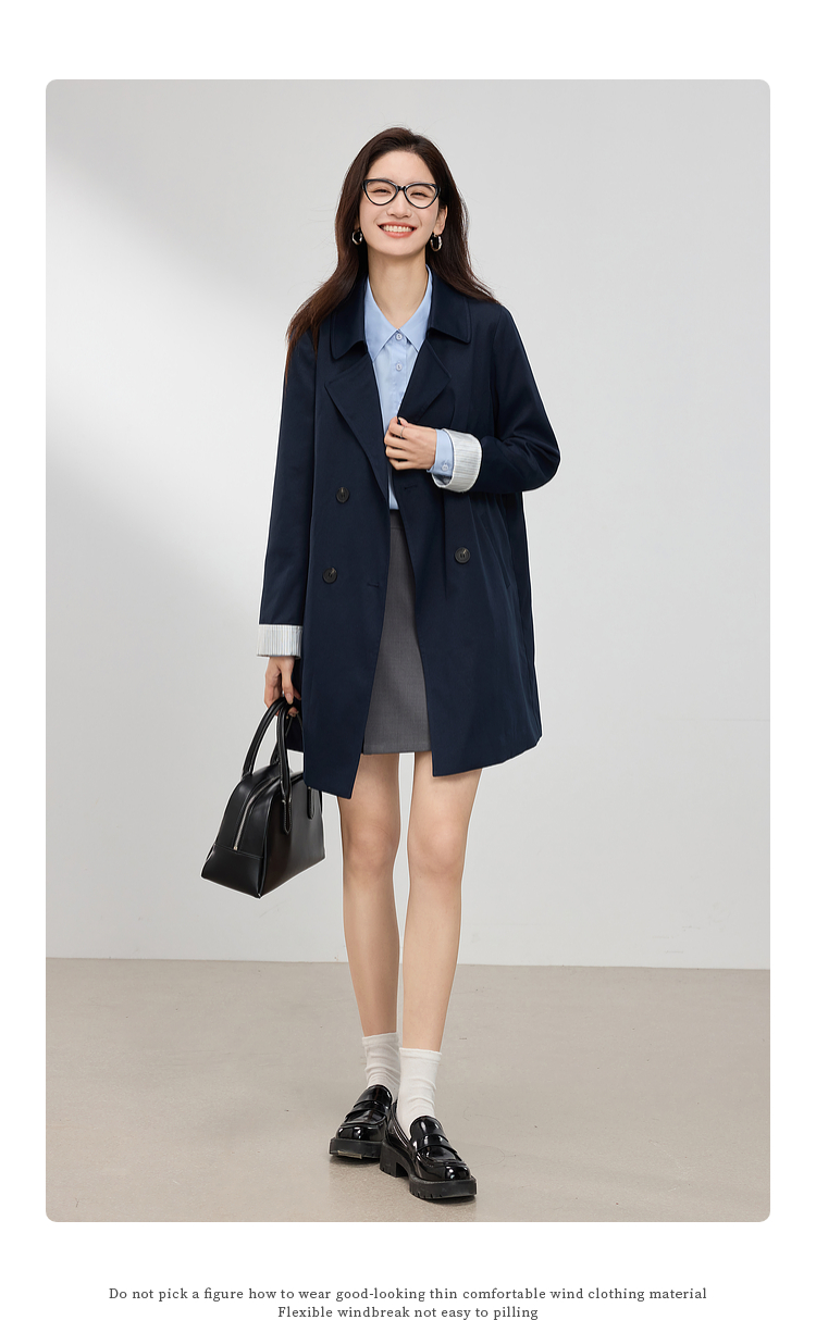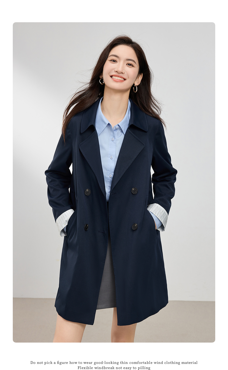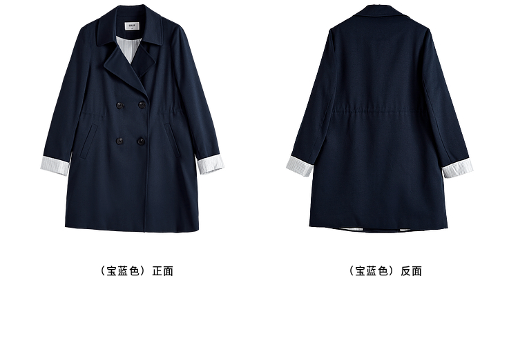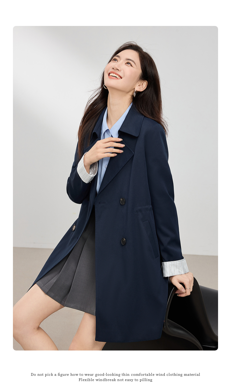 【专属特价】熙世界风衣中长款2025春装新款时尚修身宝蓝色双排扣英伦风外套