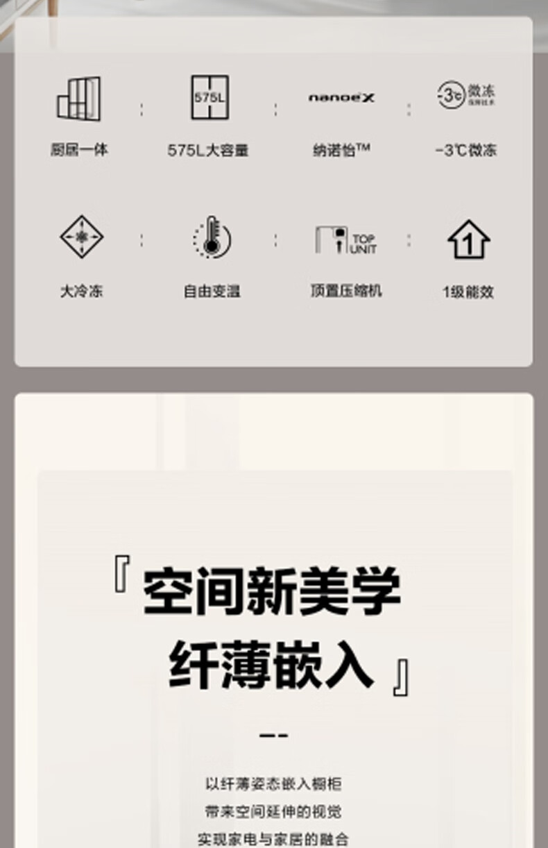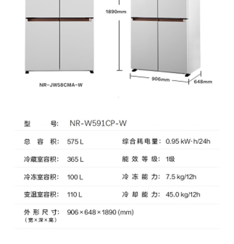 松下( Panasonic) 575升 纳诺怡X 1级能效 NR-W591CP-W