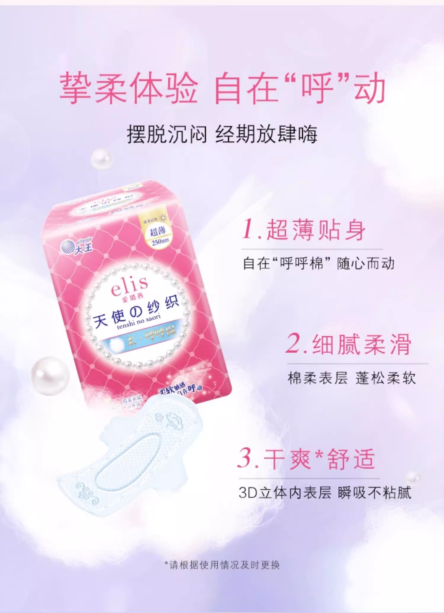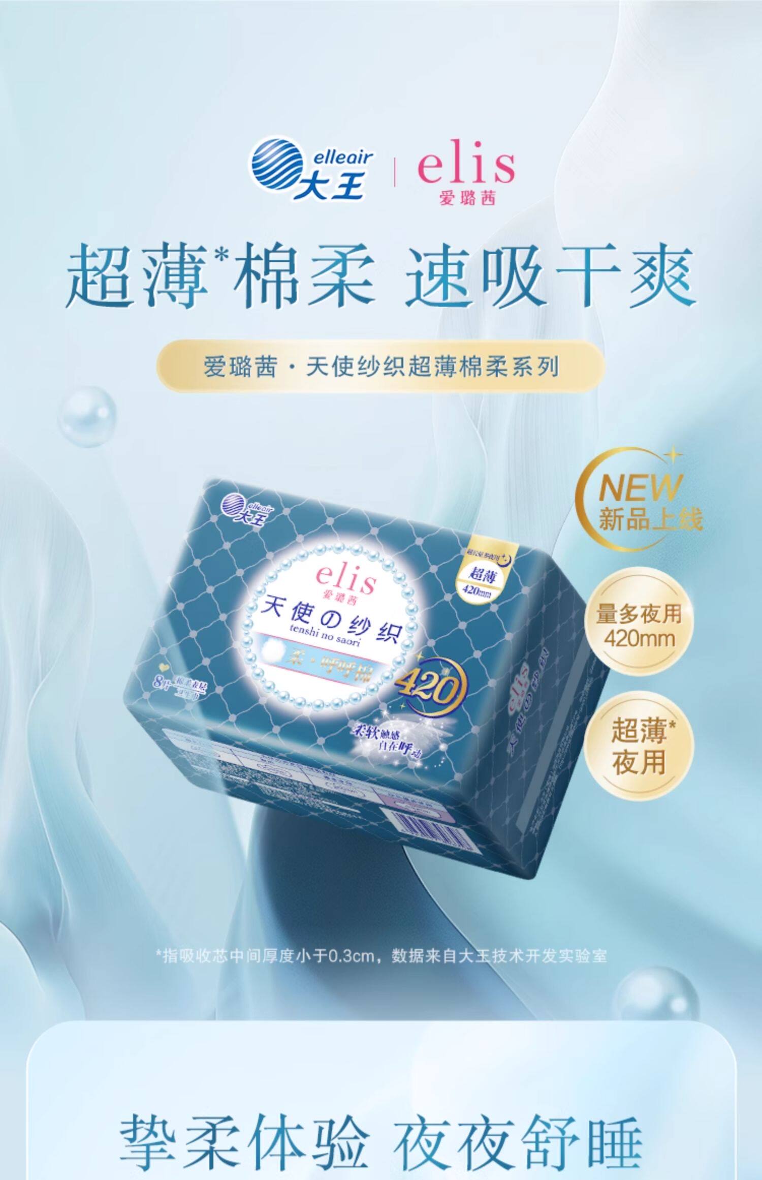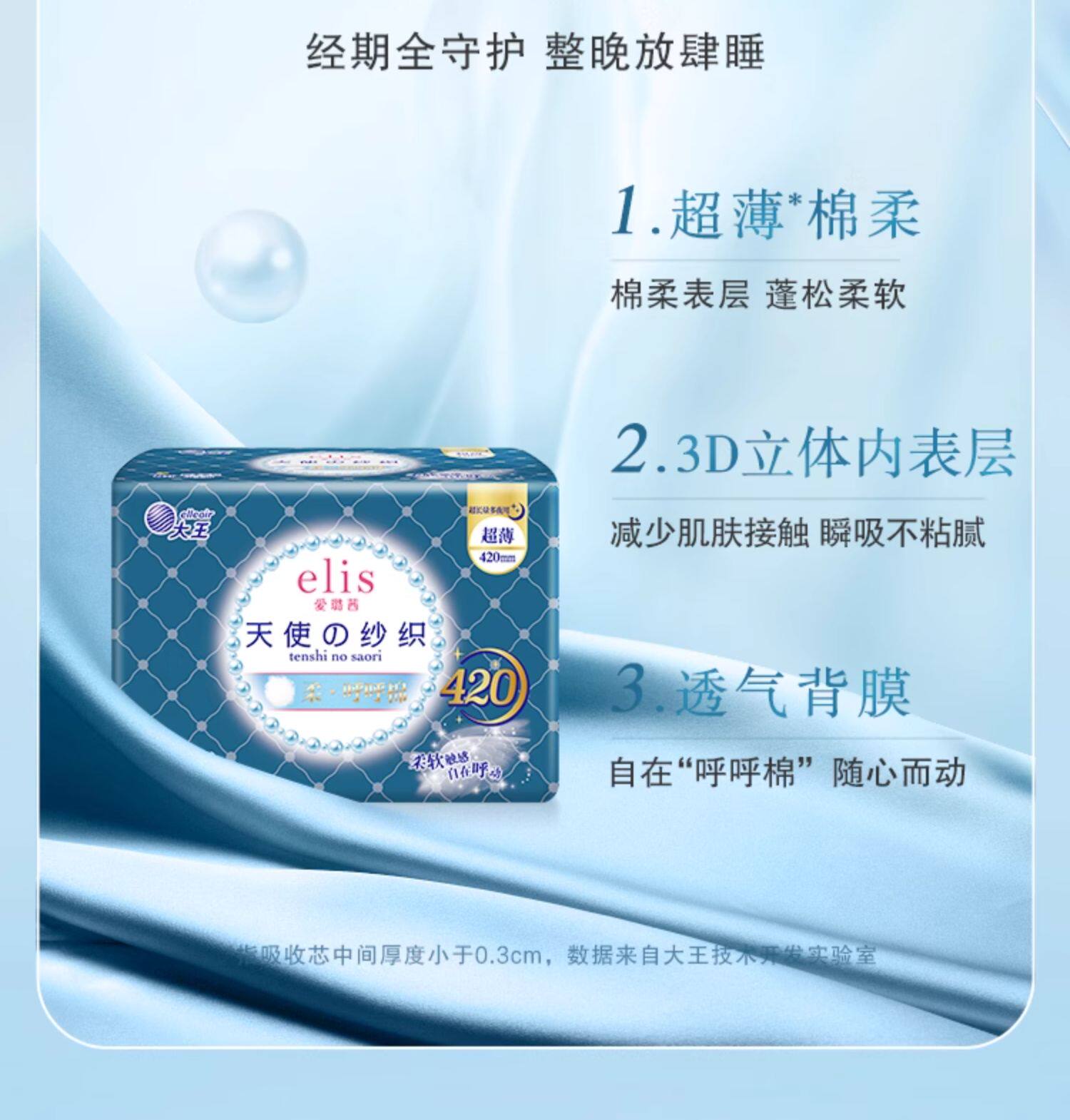 大王elis爱璐茜 天使纱织超薄纯棉日用卫生巾系列