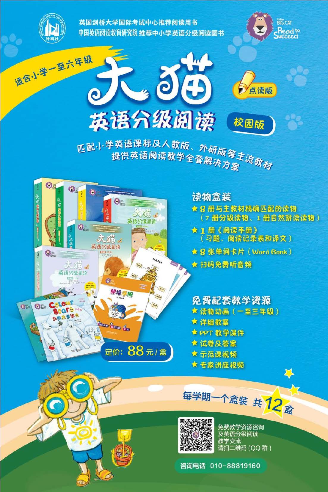 词卡片。读物既可点读,也可扫描图书封底二维码听音频。8本书既包括故事类读物又包括百科类读物,匹配小学英语课标及小学主流教材单元话题,并配有丰富的免费配套教学资源,适合小学四年级下学期阅读教学使用,也适合家庭阅读。