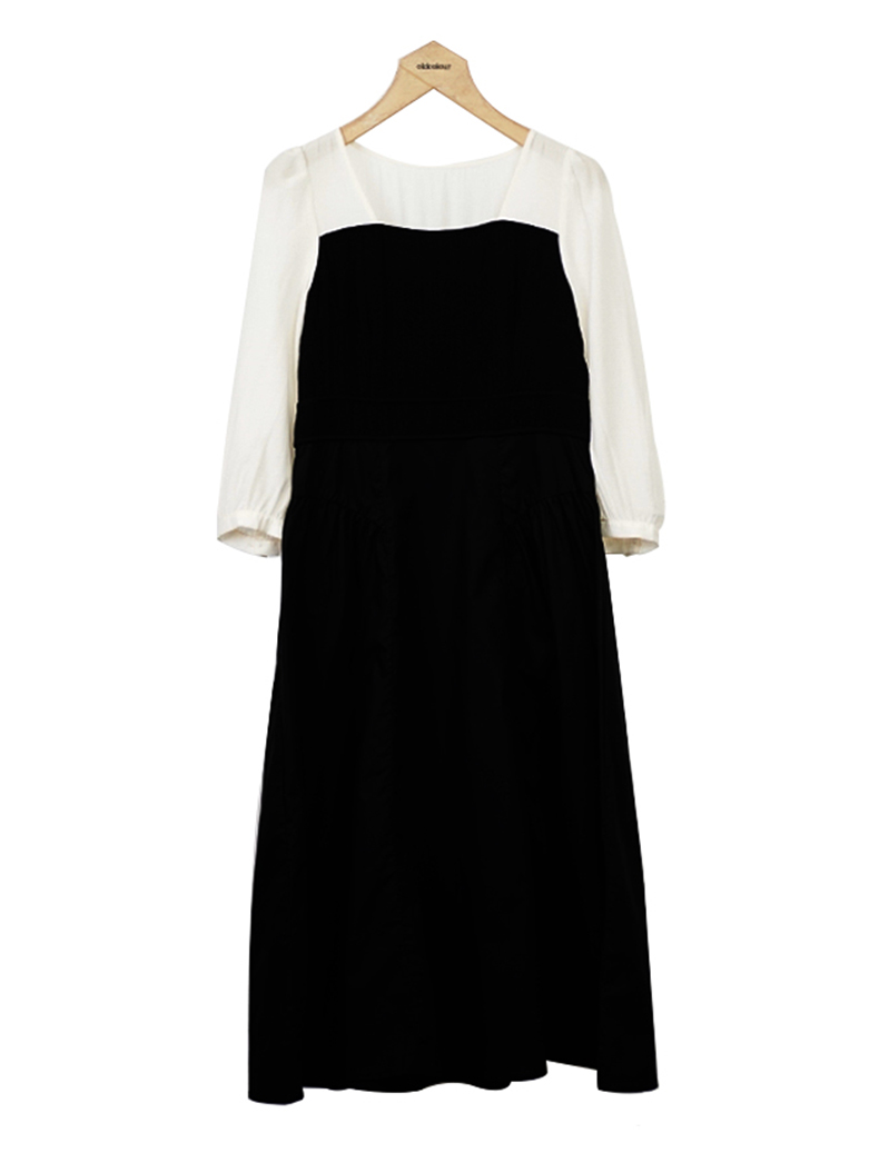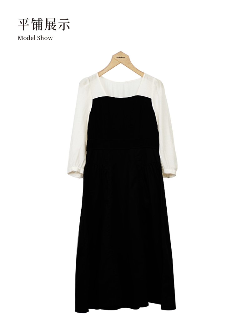 oldcolour法式气质连衣裙秋季新款撞色拼接长袖中长裙GO31103855
