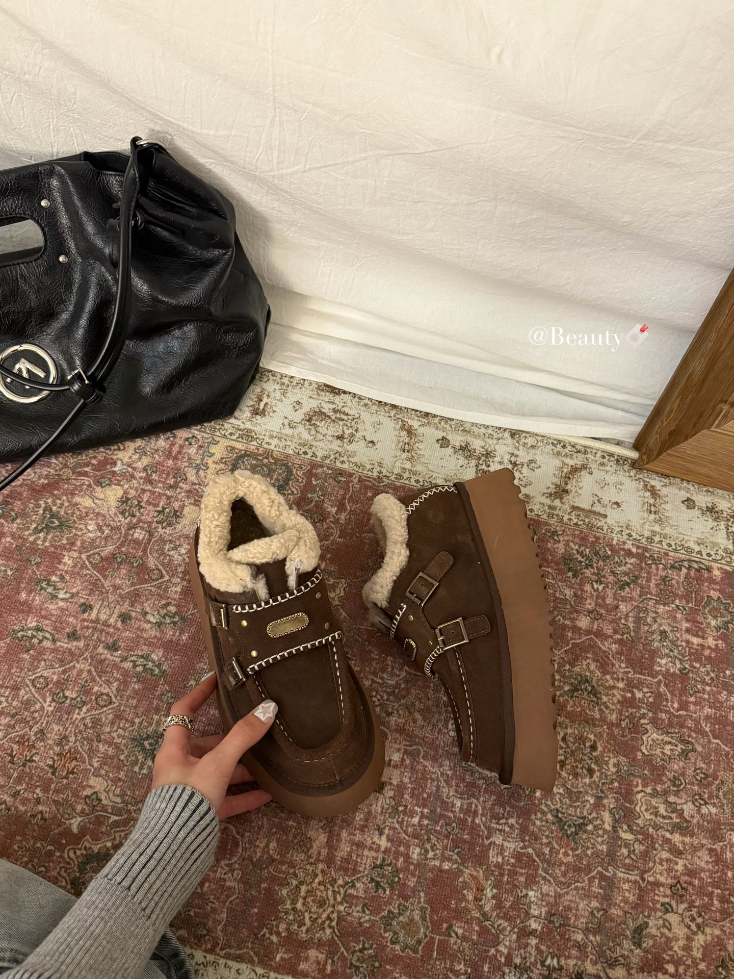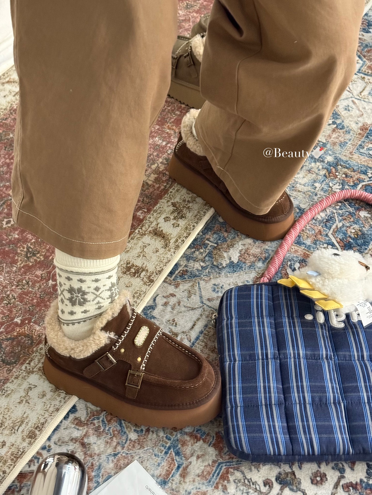 【全球第二好的】UGG田曦薇同款 这波带扣毛毛鞋把“复古甜酷”玩明白了 金属扣和明线设计又让它多了份复古腔调~不管是栗色的温柔、巧色的复古,还是羚羊棕的质感,每一双都戳中审美点!