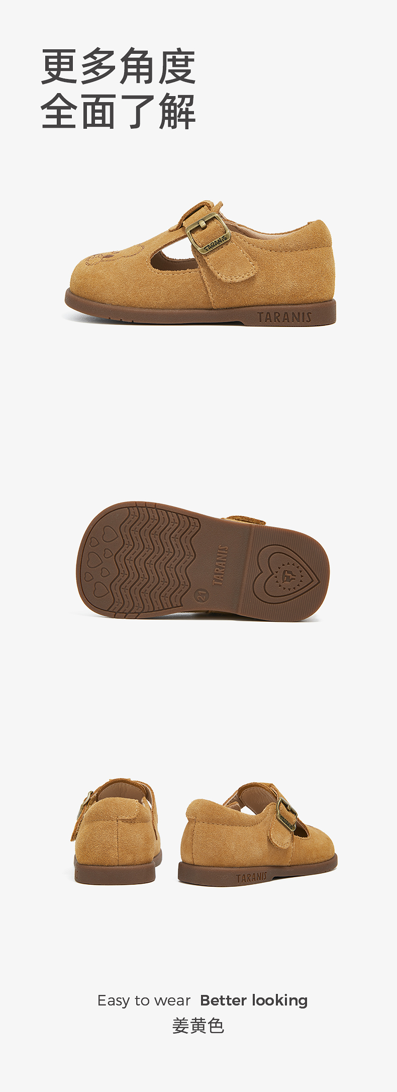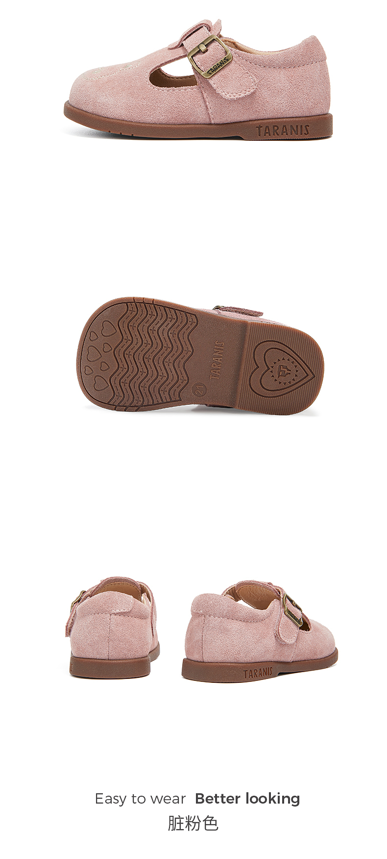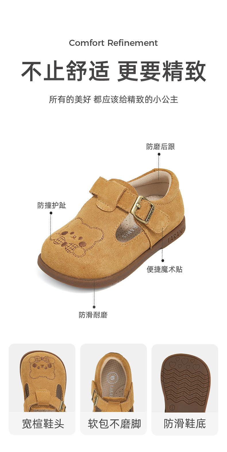 泰兰尼斯童鞋真皮女童勃肯鞋25秋季复古女宝宝皮鞋男童软底学步鞋 T03T5C6509