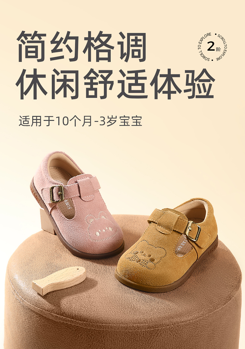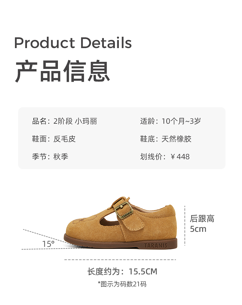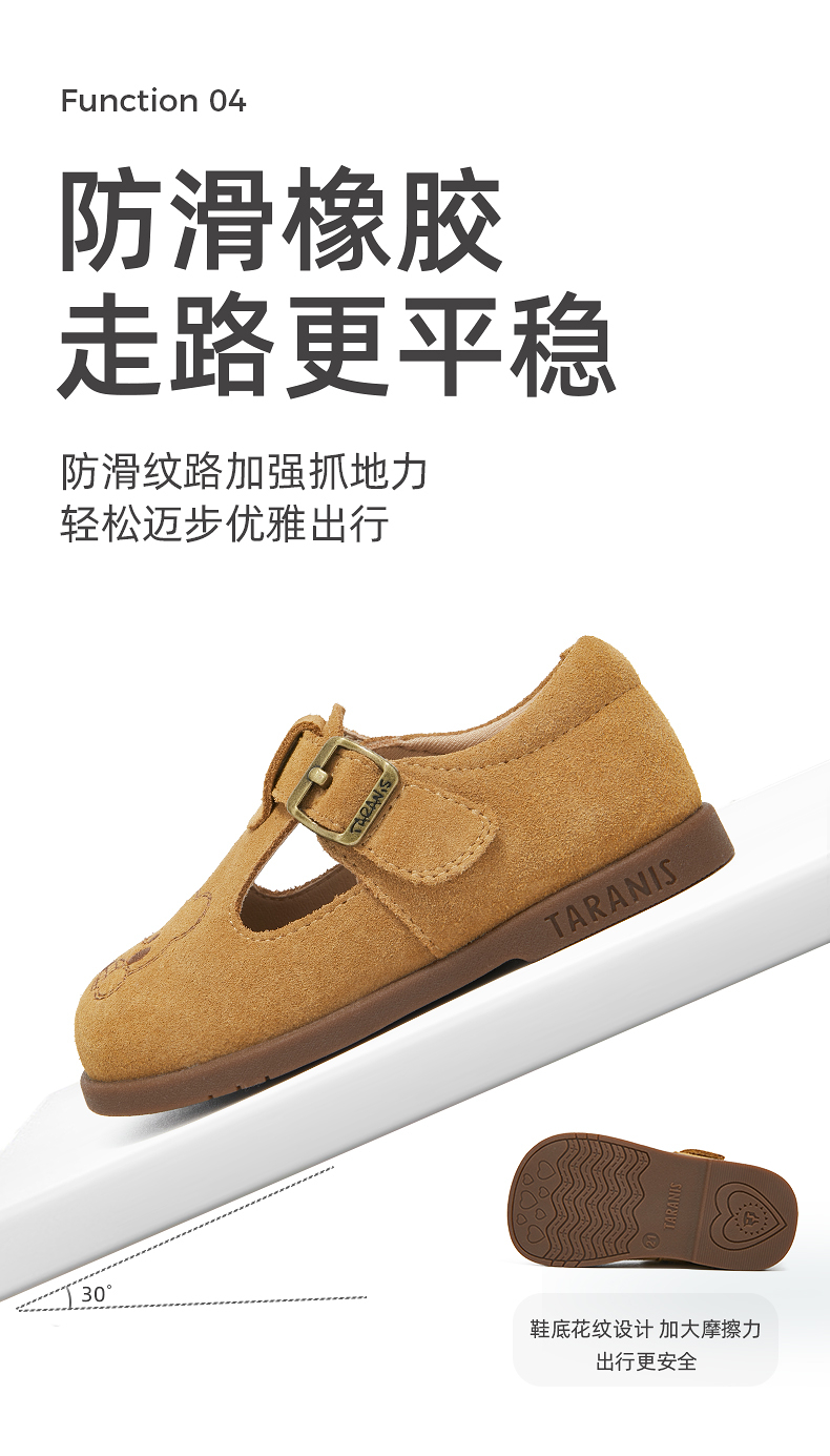 泰兰尼斯童鞋真皮女童勃肯鞋25秋季复古女宝宝皮鞋男童软底学步鞋 T03T5C6509