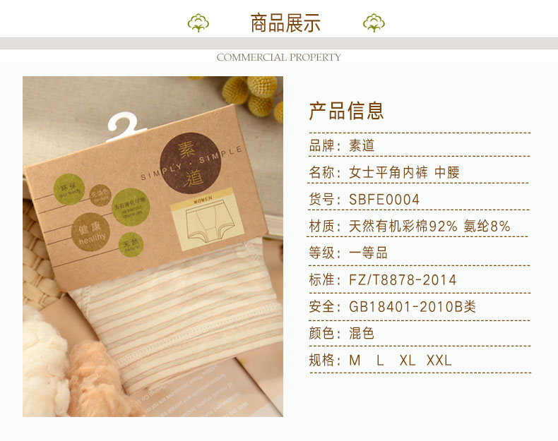 航 素道有机彩棉 女士小平角内裤 混色SBFE04