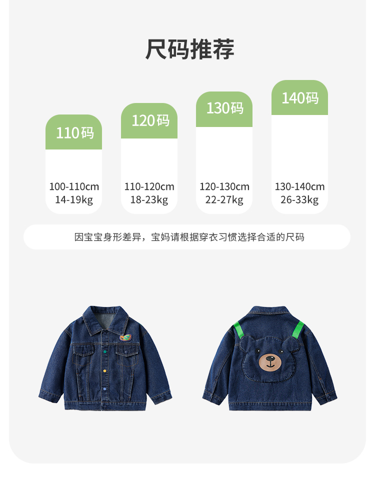【110-140】【MQDmini】男童春秋牛仔外套挺括百搭夹克