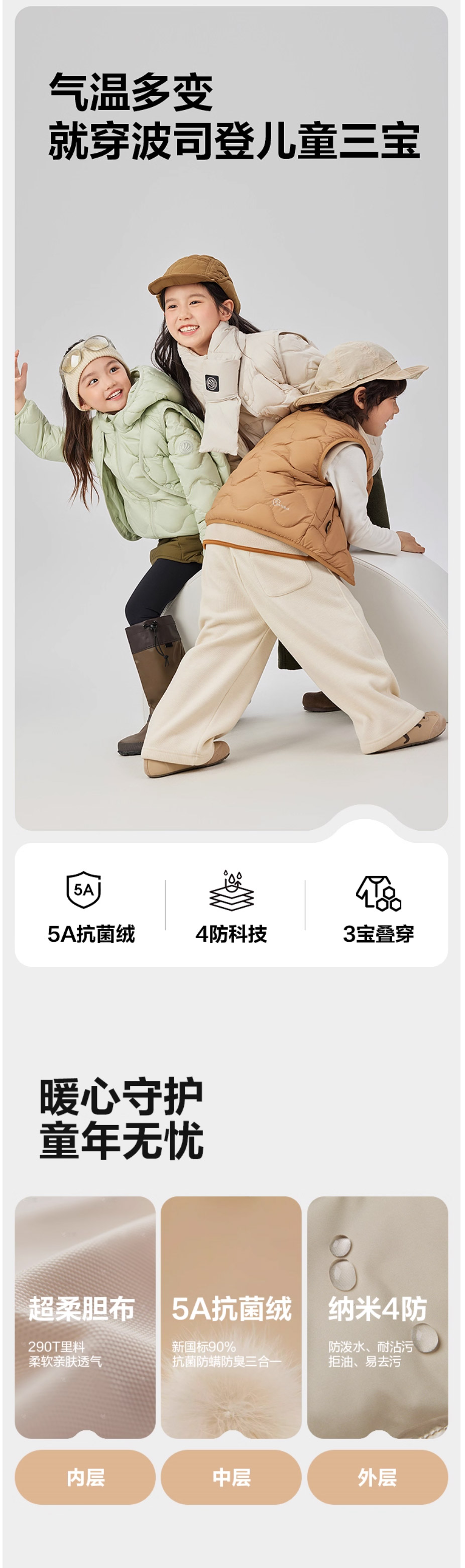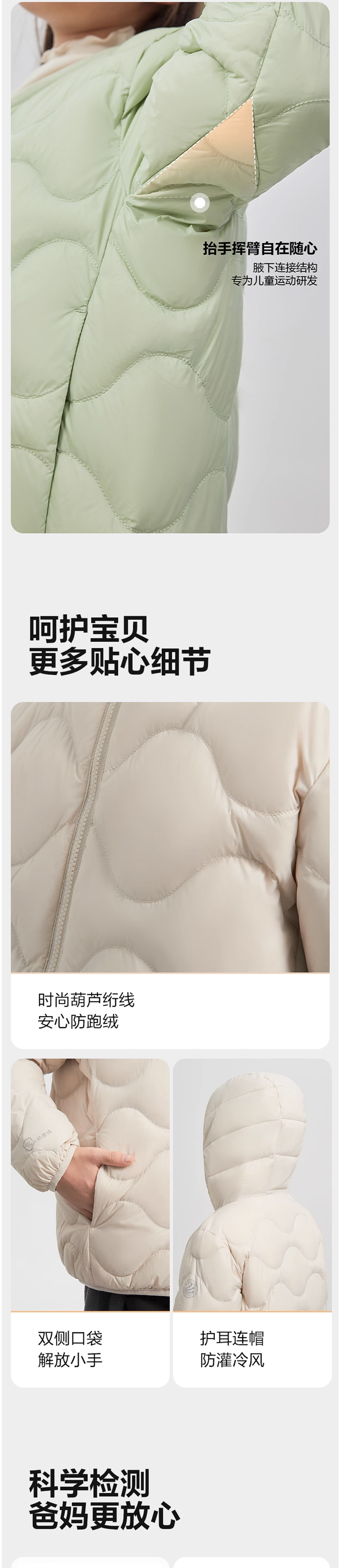 波司登2025新款儿童薄羽绒服男女童短款轻暖连帽T250135500W