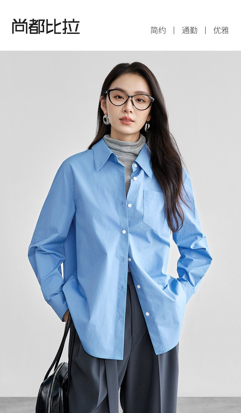 【尚都比拉】新款盐系100%棉多彩廓型感松弛舒适衬衫宽肩休闲上衣-151C56991