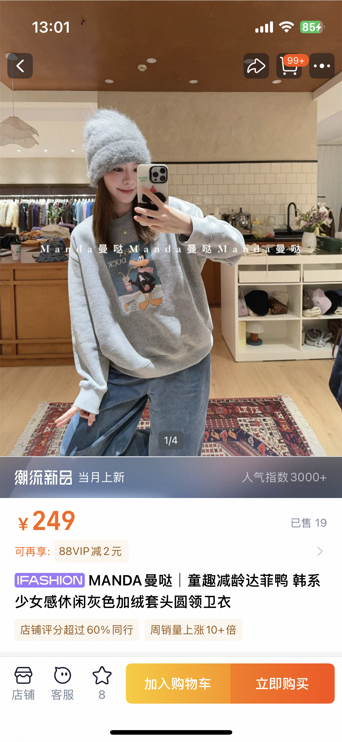 韩代同款!达菲鸭加绒卫衣, 软到不想脱~~!