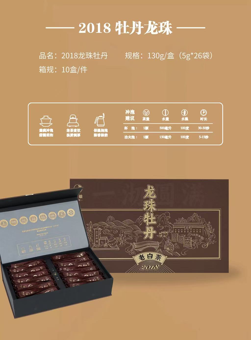 白茶 | 中雄御品 2018年圆满·龙珠牡丹 老白茶 130g/盒(5g*26泡)