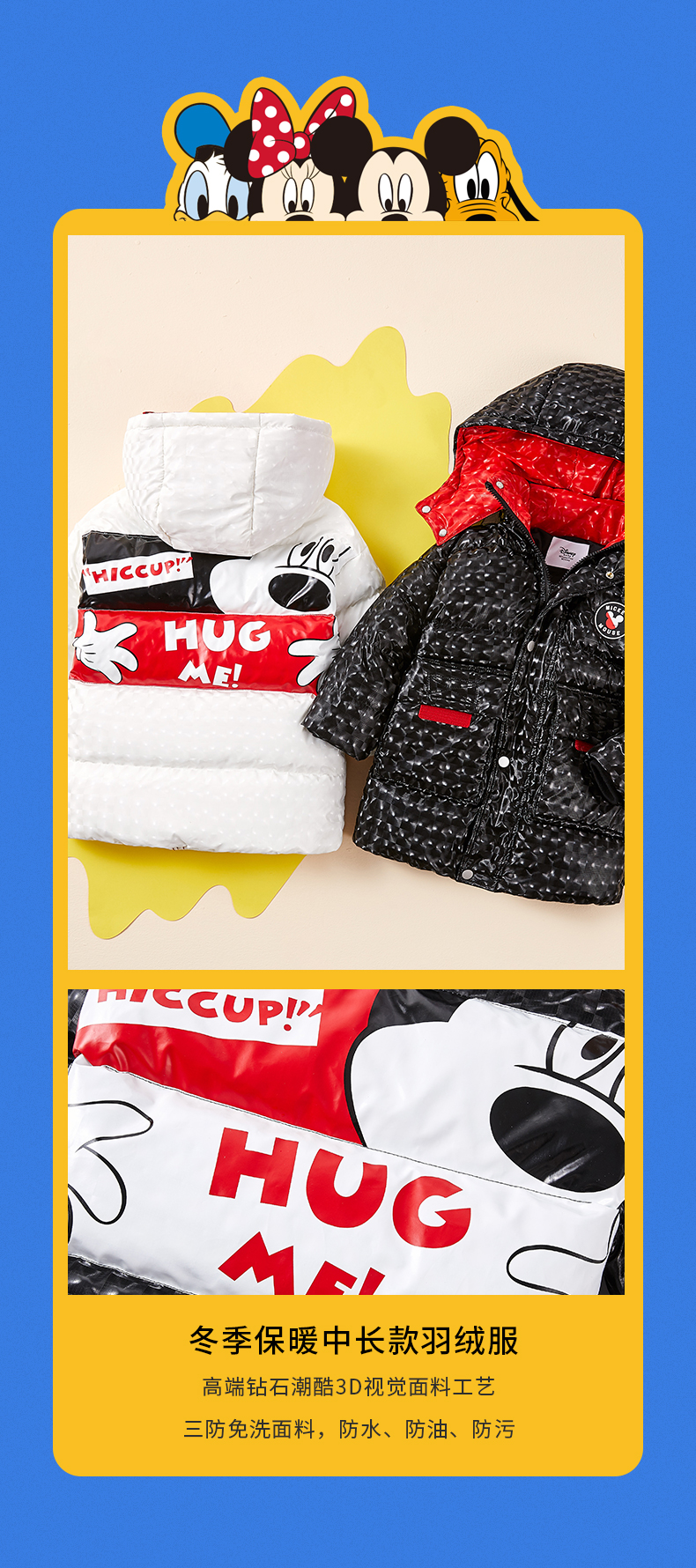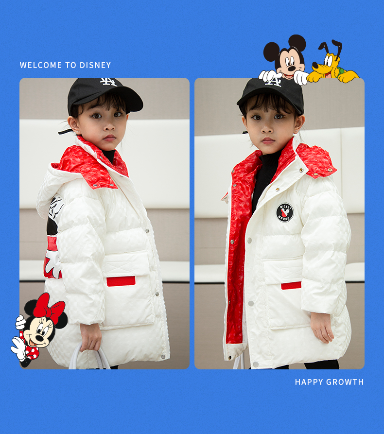 2023年迪士尼中长款男女孩儿童加厚羽绒服XHR