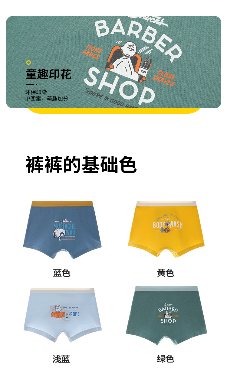 【清仓捡漏】【4条装】【110,150,170】【史努比】男童四季款纯棉内裤组合装