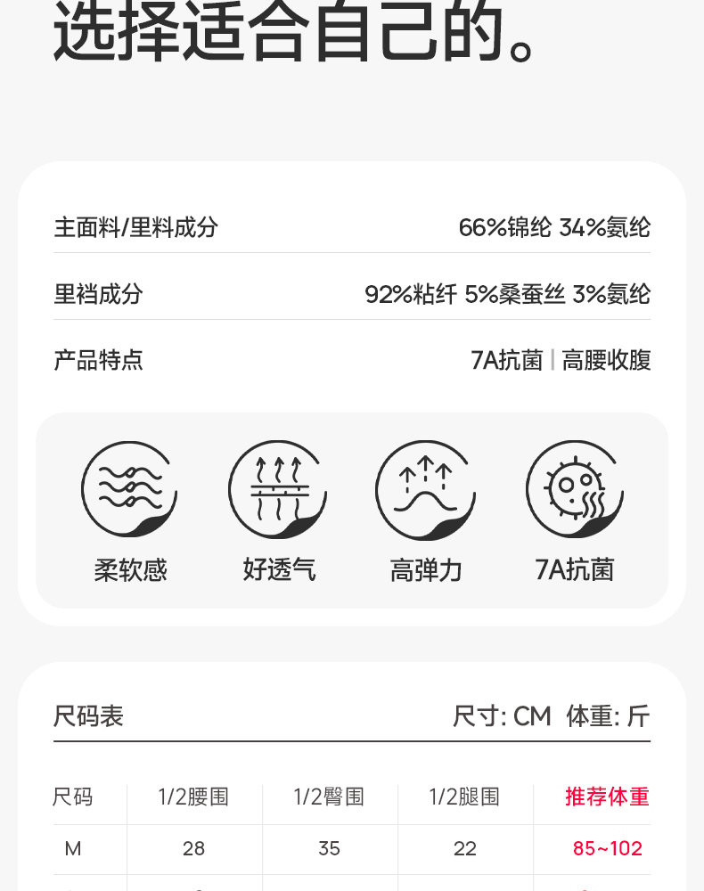 芬腾女士内裤高腰收腹抗菌内裆三角裤提臀薄款透气舒适短裤头裤衩