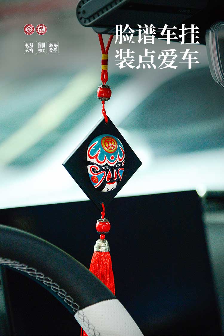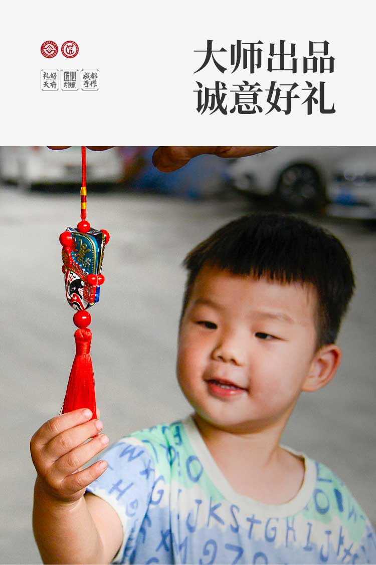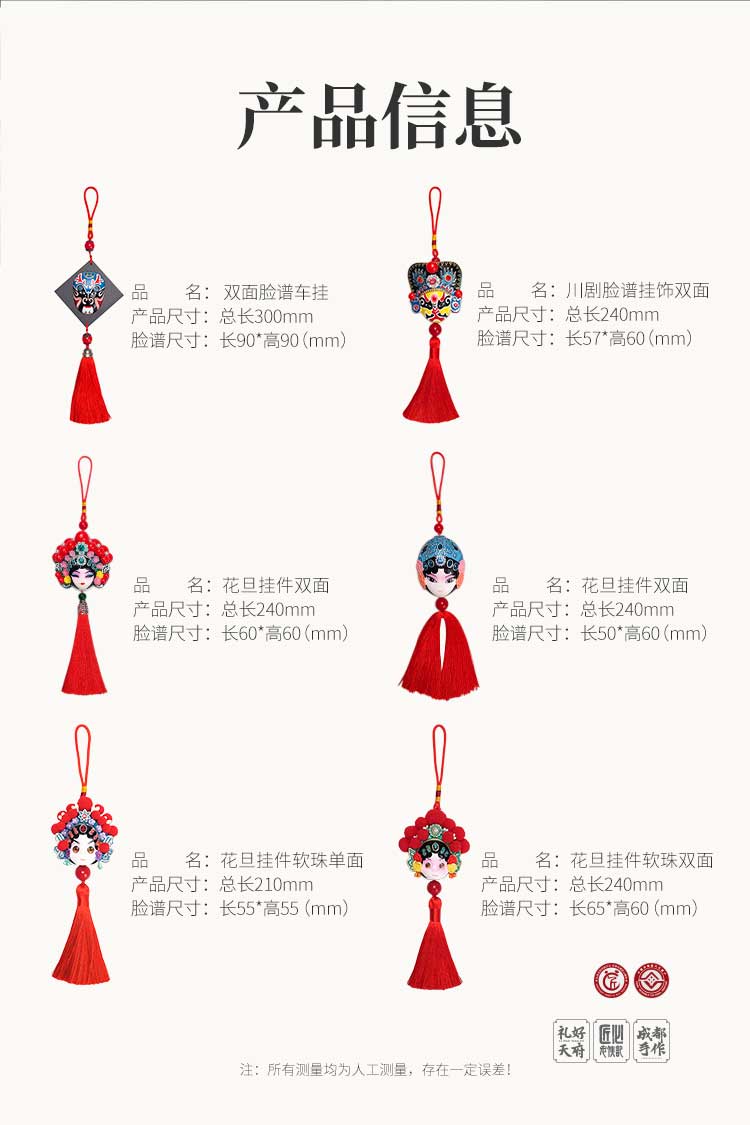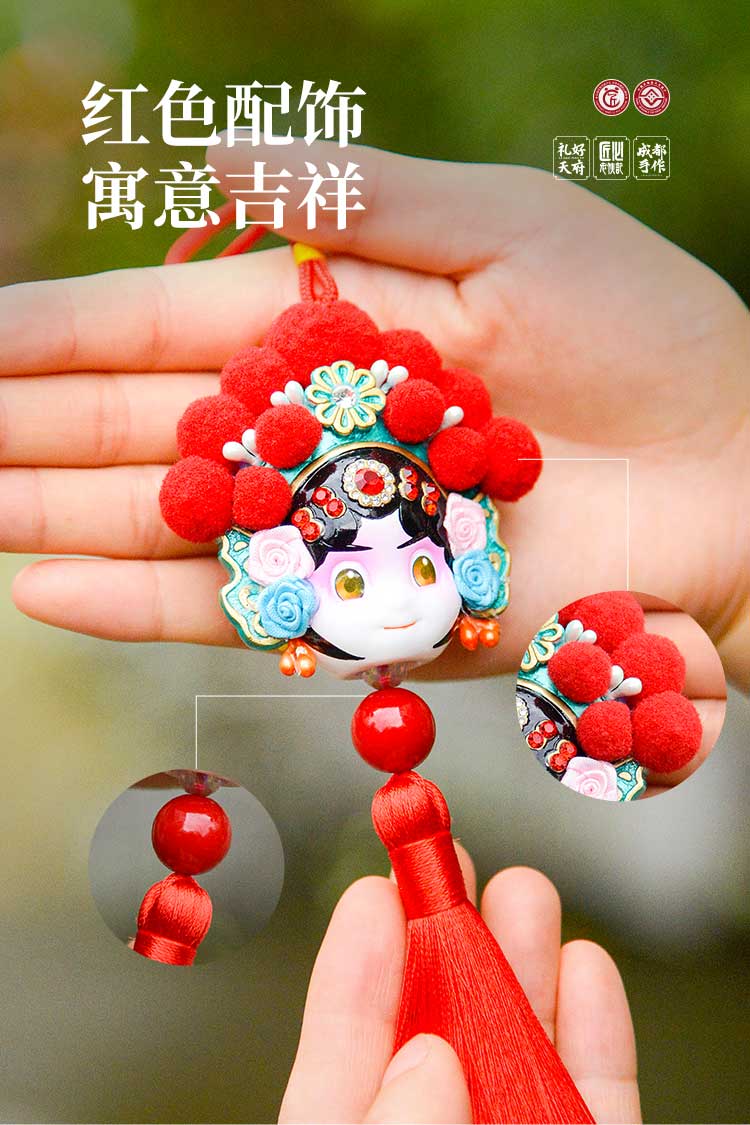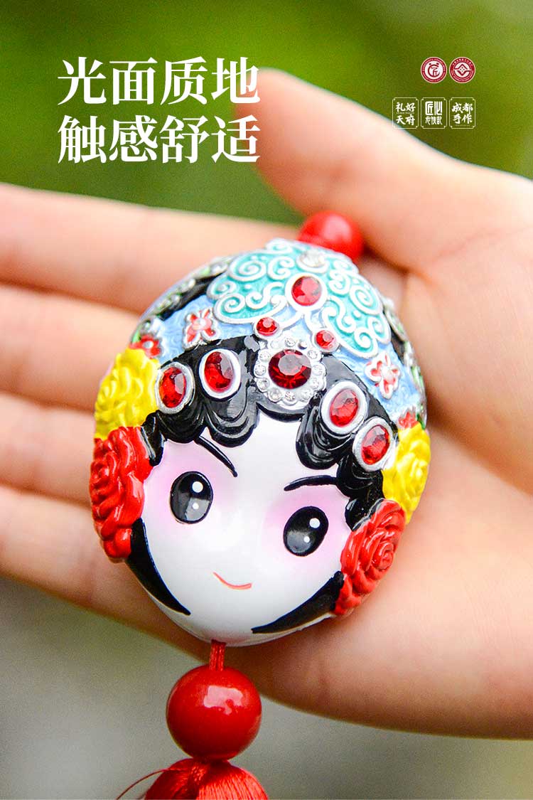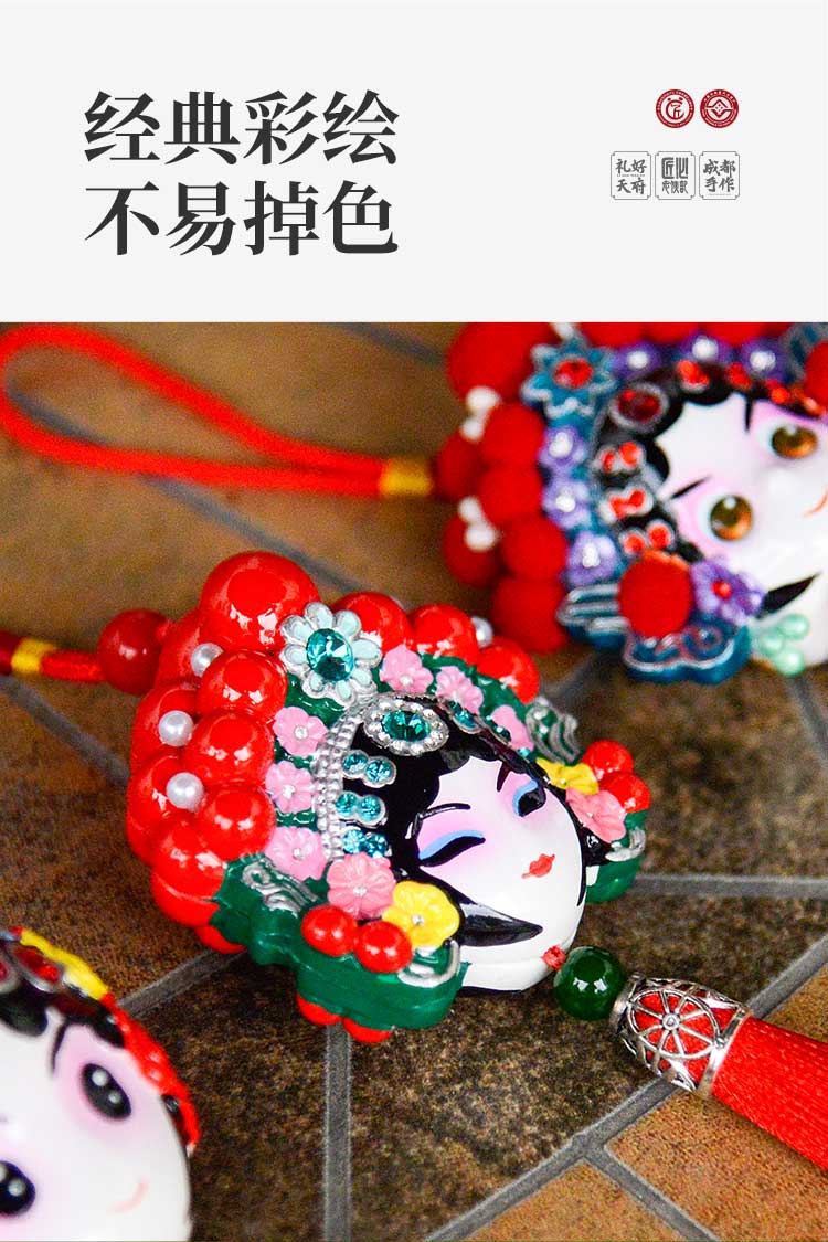 成都手作川剧脸谱挂件 非遗泥塑 手工饰品 双面脸谱 红色喜庆挂饰