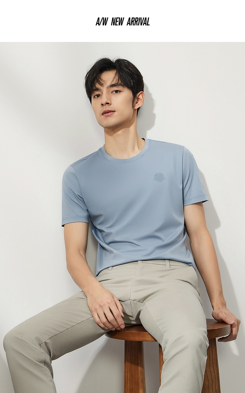 柒牌男装短袖T恤男2025夏季新品时尚潮流青年休闲百搭圆领上衣薄 128T71640