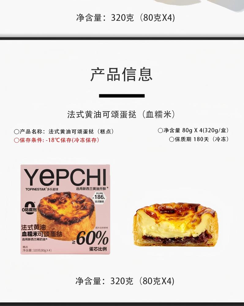 心选丨多乐星球 黄油可颂蛋挞320克/盒原味/香芋味/血糯米可选