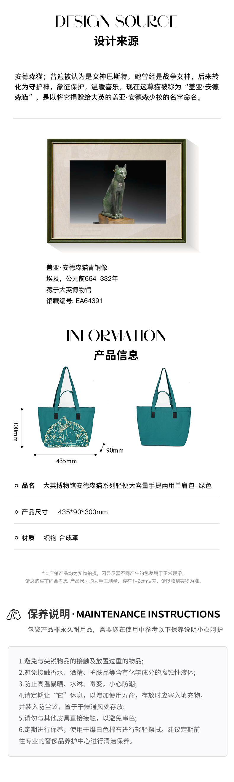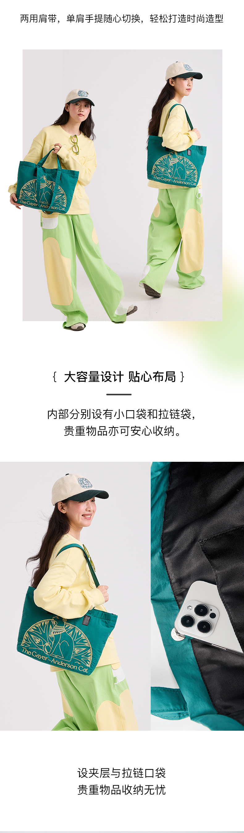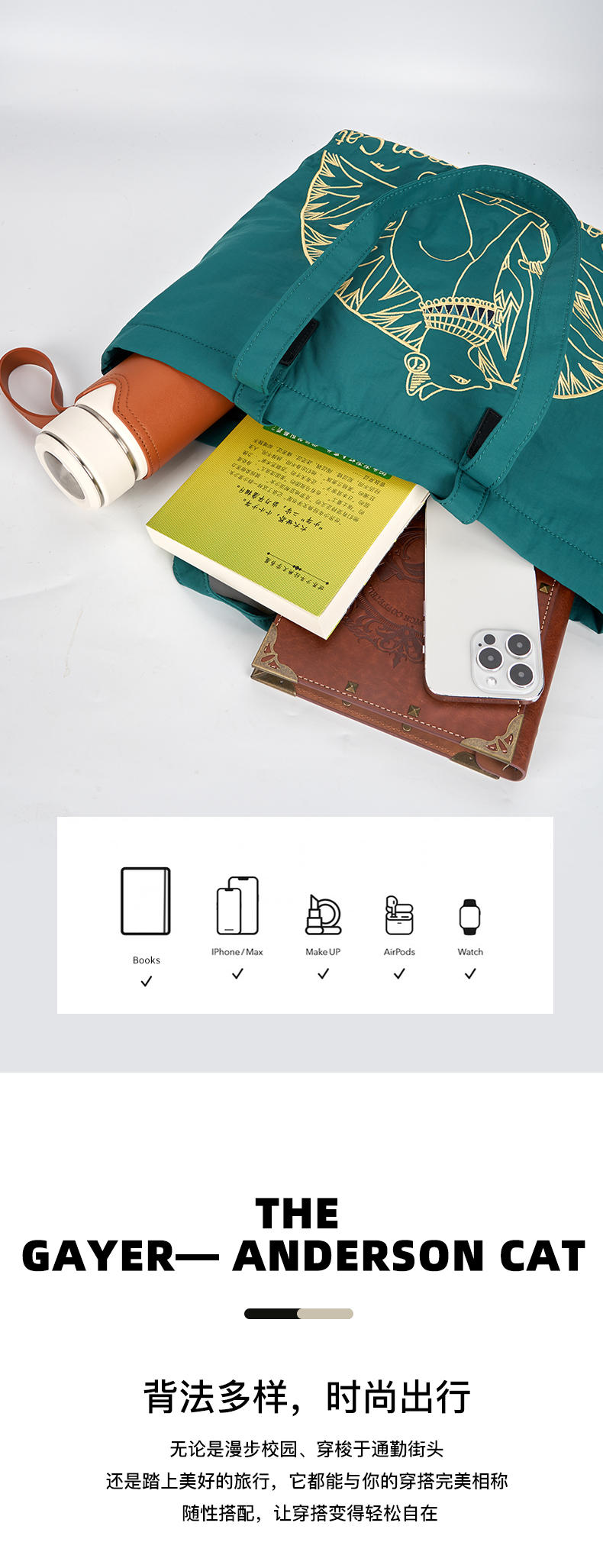 大英博物馆 盖亚.安德森猫系列 轻便大容量手提两用单肩包 绿色