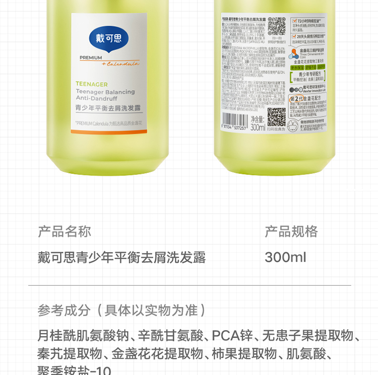 【秋冬去屑洗发推荐】戴可思 青少年平衡去屑洗发露 改善头皮头痒 控油蓬松