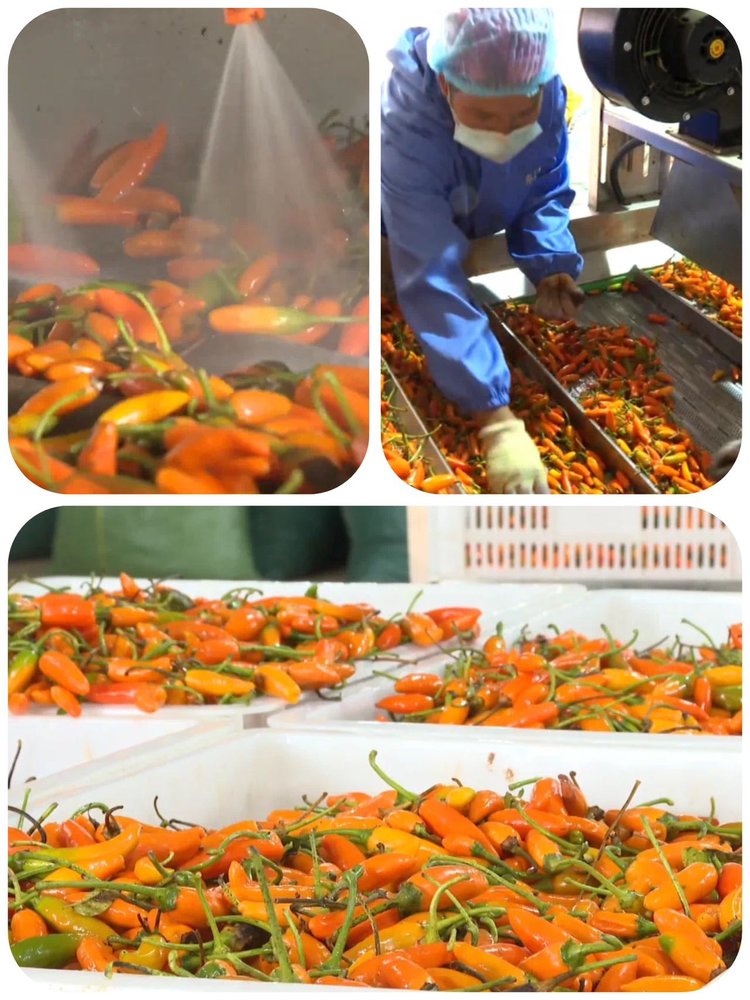 鲜椒传送到清洗区域