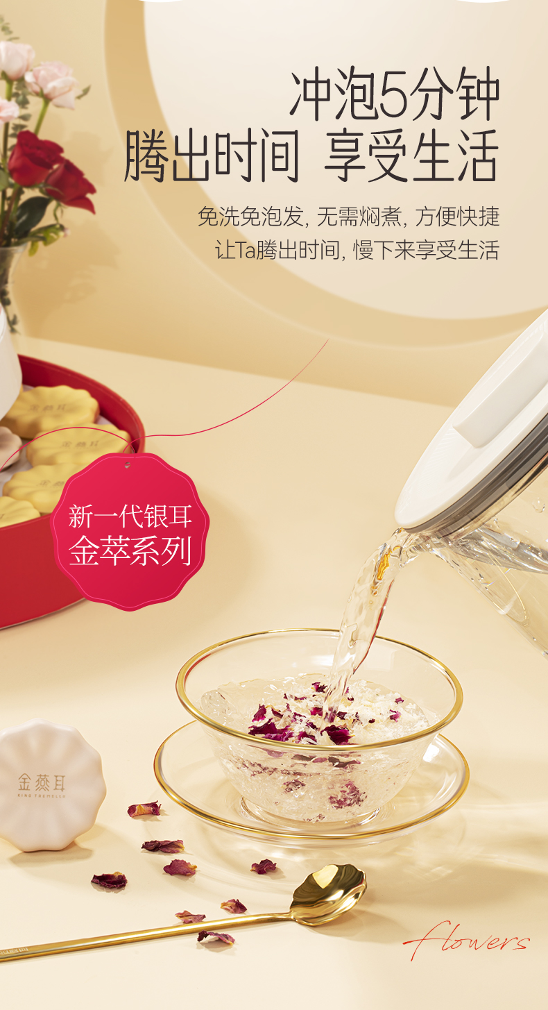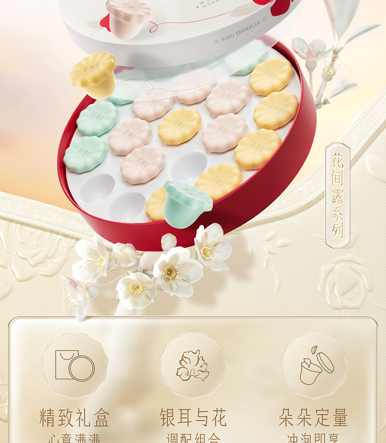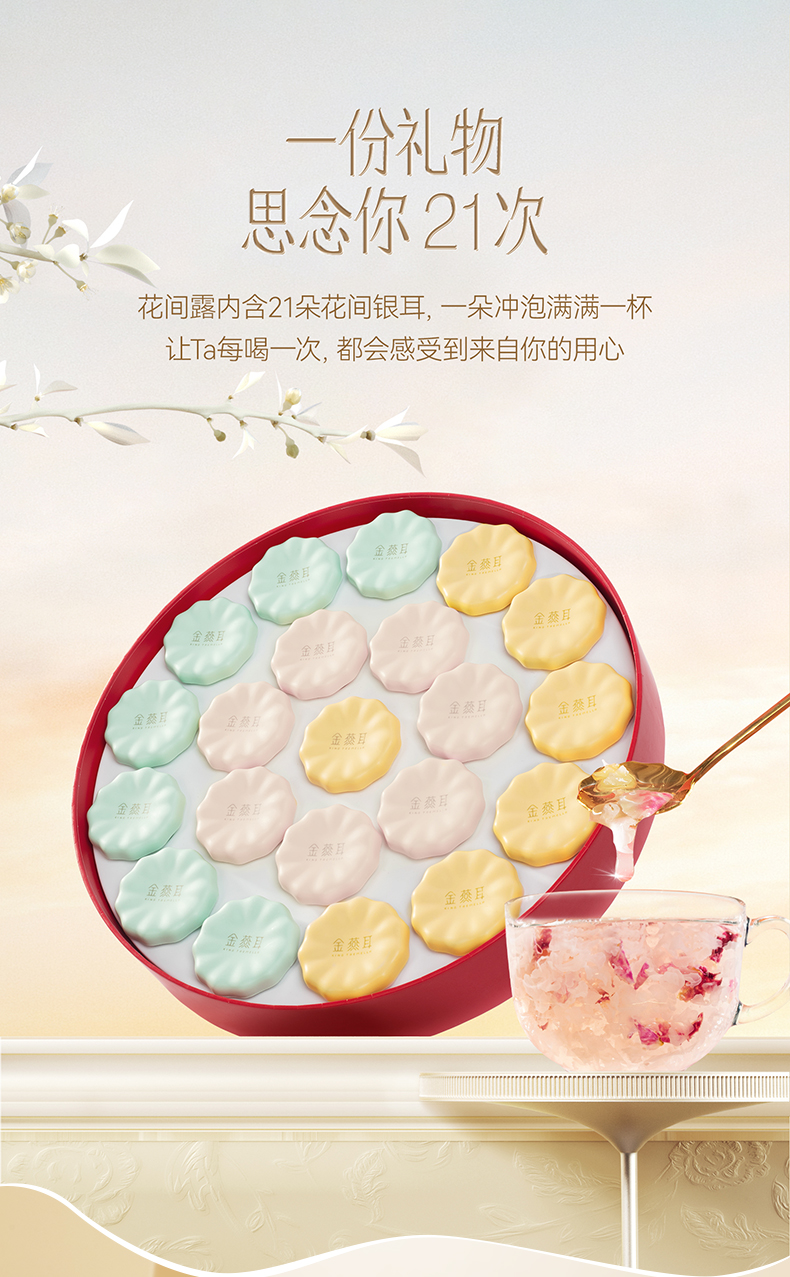 金燕耳 花间露组合套装 “花”式养生 【金萃系列】高山生态有机银耳 冲泡5分钟即食 桂花/茉莉/玫瑰3种口味 21朵/盒 红色礼袋/粉色礼袋随机发 (特别礼盒优惠 不参与超级会员折扣)