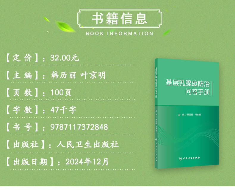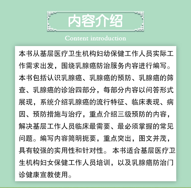 基层乳腺癌防治问答手册 韩历丽等编 适合基层医疗卫生机构妇女保健工作人员培训 以及乳腺癌防治门诊健康宣教使用 人民卫生出版社