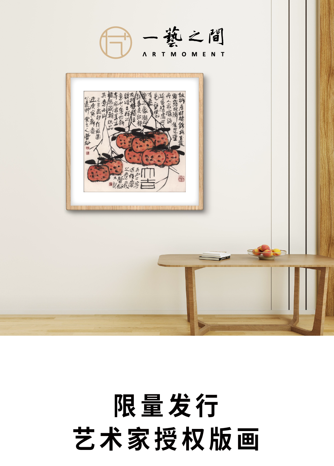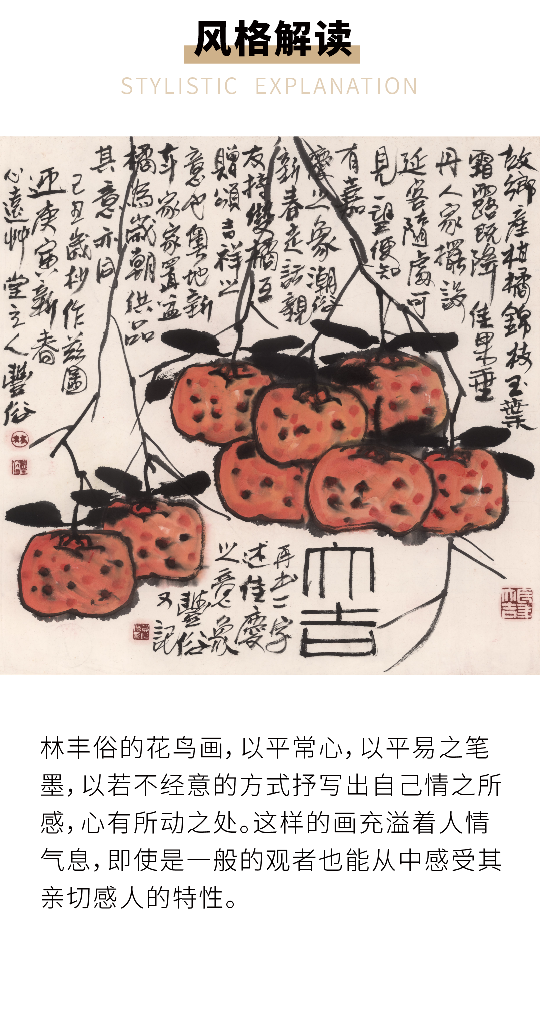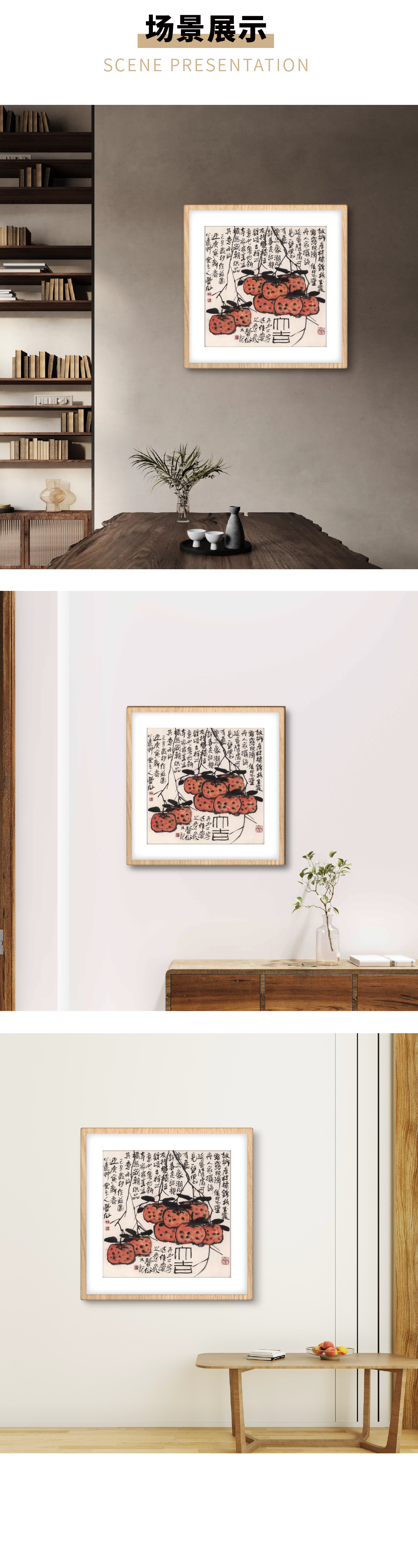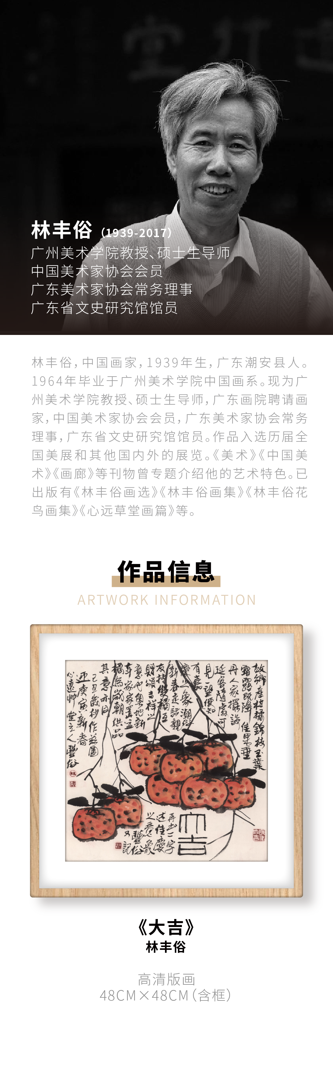 高清复制画 林丰俗《大吉》48cm*48cm 含框 复制装饰画 新中式风格轻盈高清雅致好搭配茶室客厅书房办公室已装框