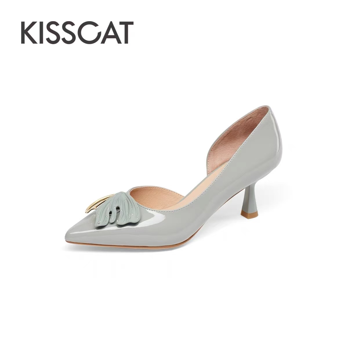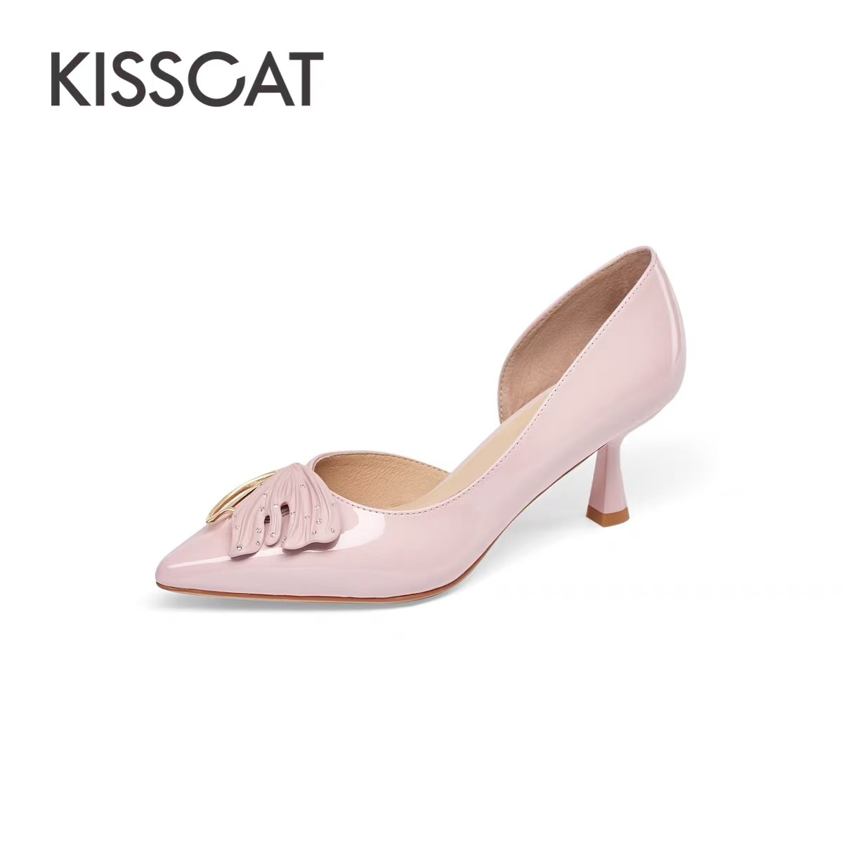 2F【Kiss cat接吻猫厅】接吻猫新款精致细跟高跟鞋简约亮感高级气质尖头单鞋女