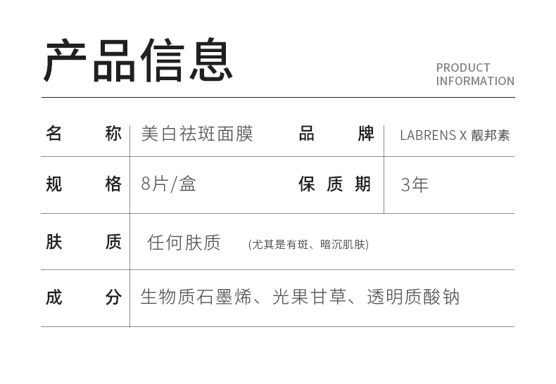 【靓邦素】 美白祛斑祛黄补水保湿面膜 8片/盒