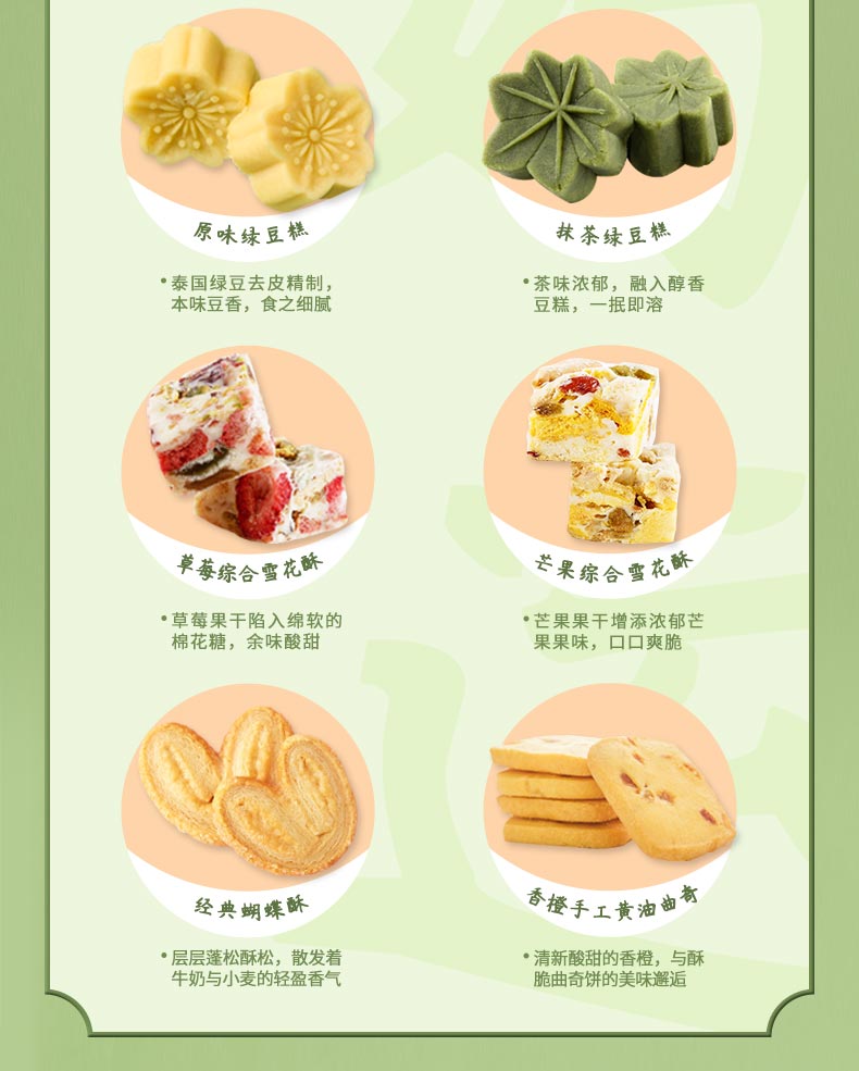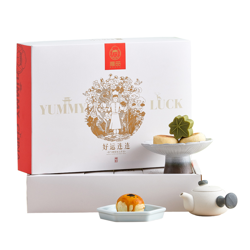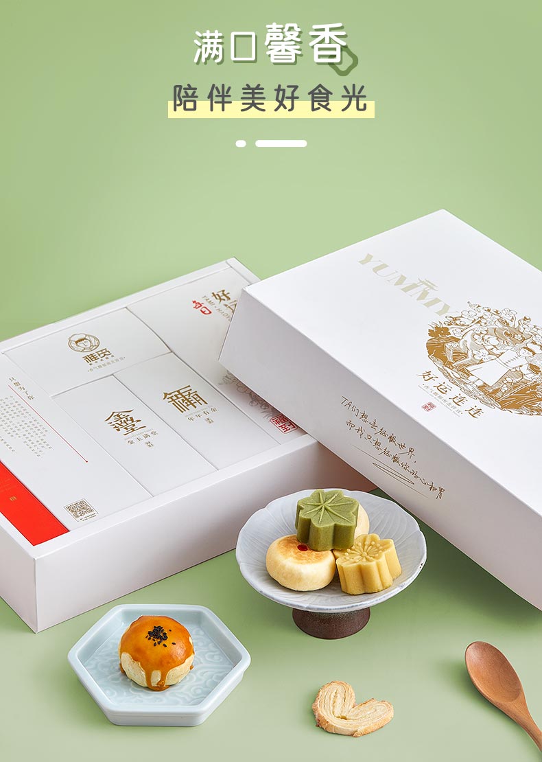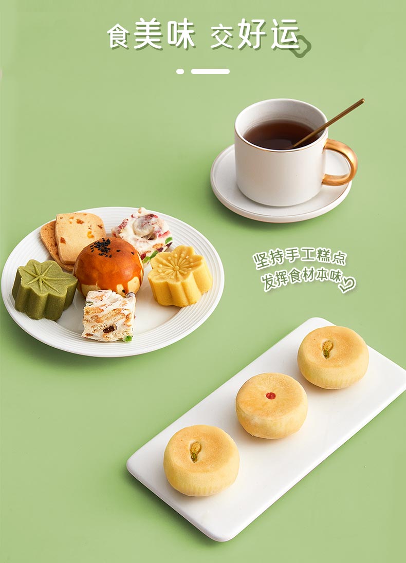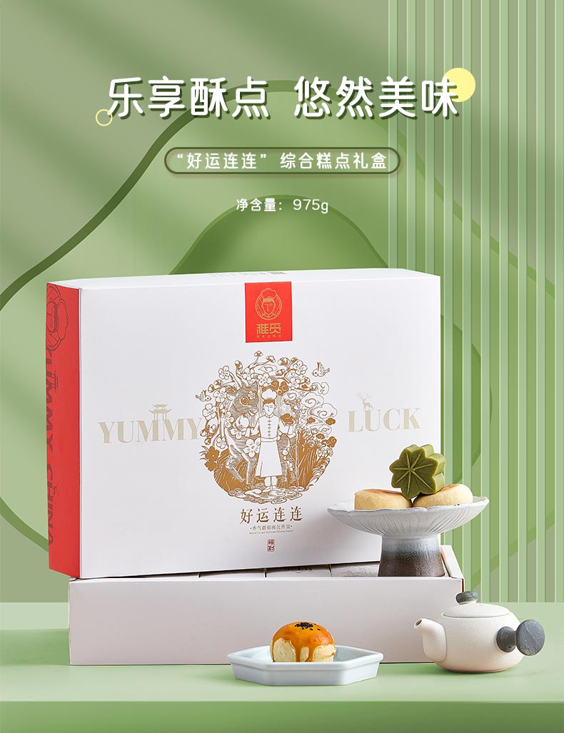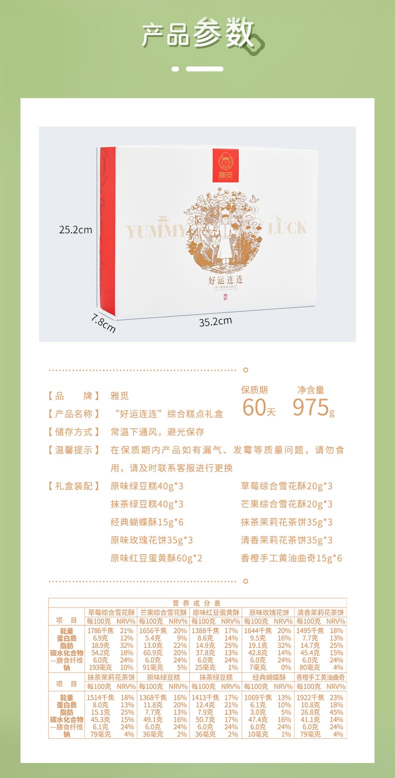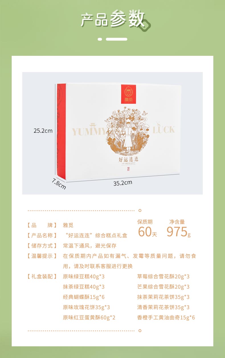 雅觅 绿豆糕鲜花饼手工蛋黄酥蝴蝶酥曲奇饼干大礼包正宗传统糕点零食点心礼盒 好运连连礼盒975g 35枚