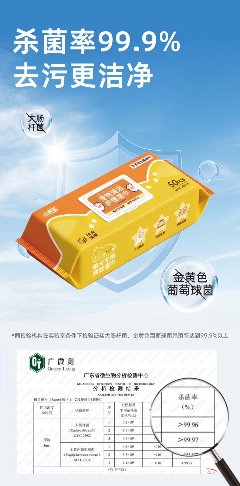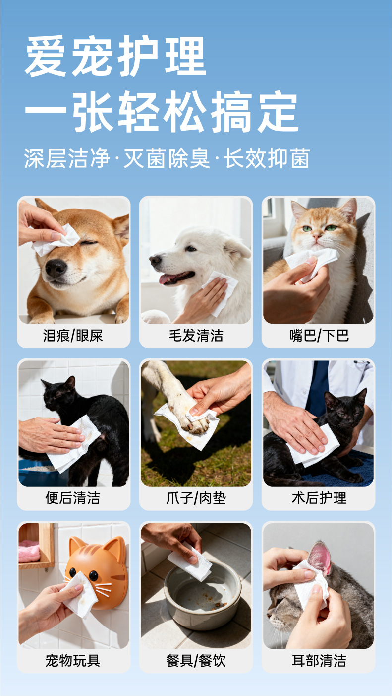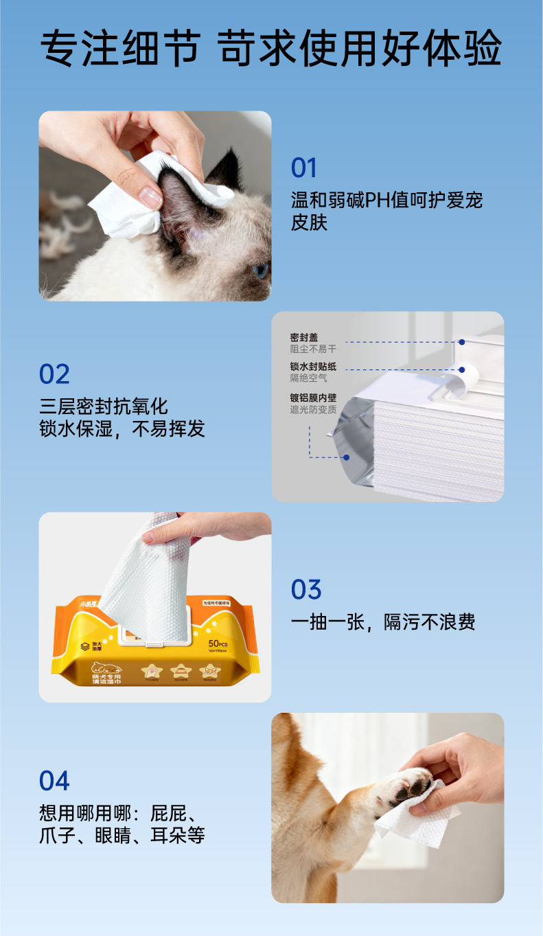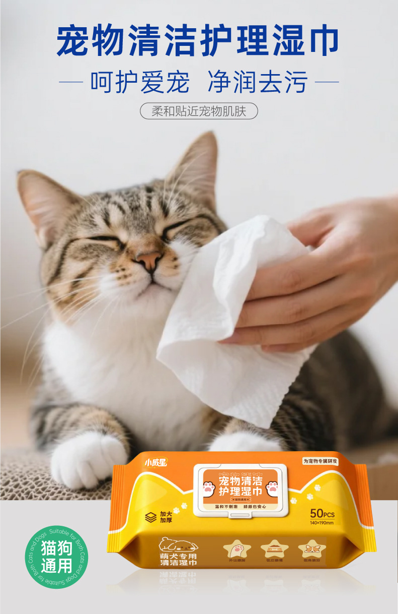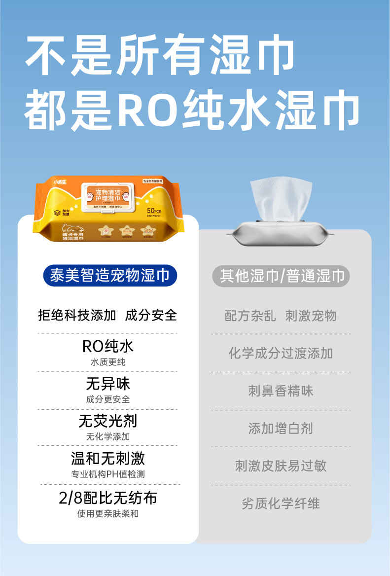 【99.9%杀菌率、RO纯水配方】宠物湿巾一次性免洗清洁用品猫咪狗狗洗澡除臭专用湿纸巾.TA