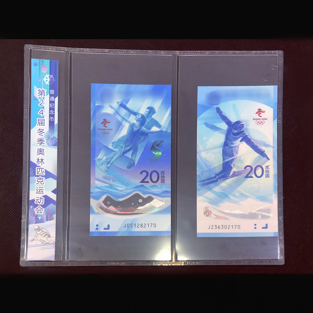 这是我国第一套冬奥会题材纪念钞,首套20元面值对钞。