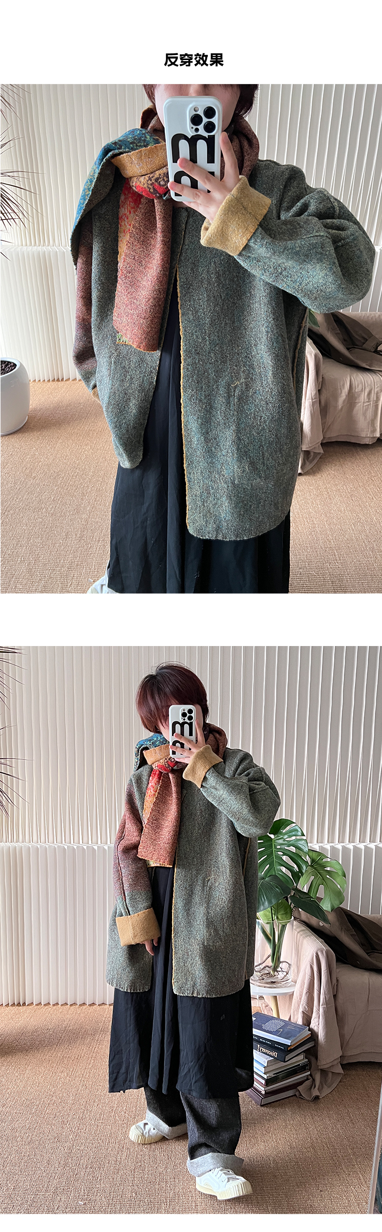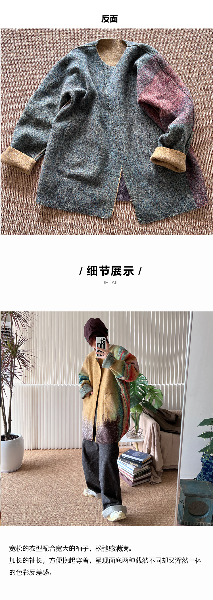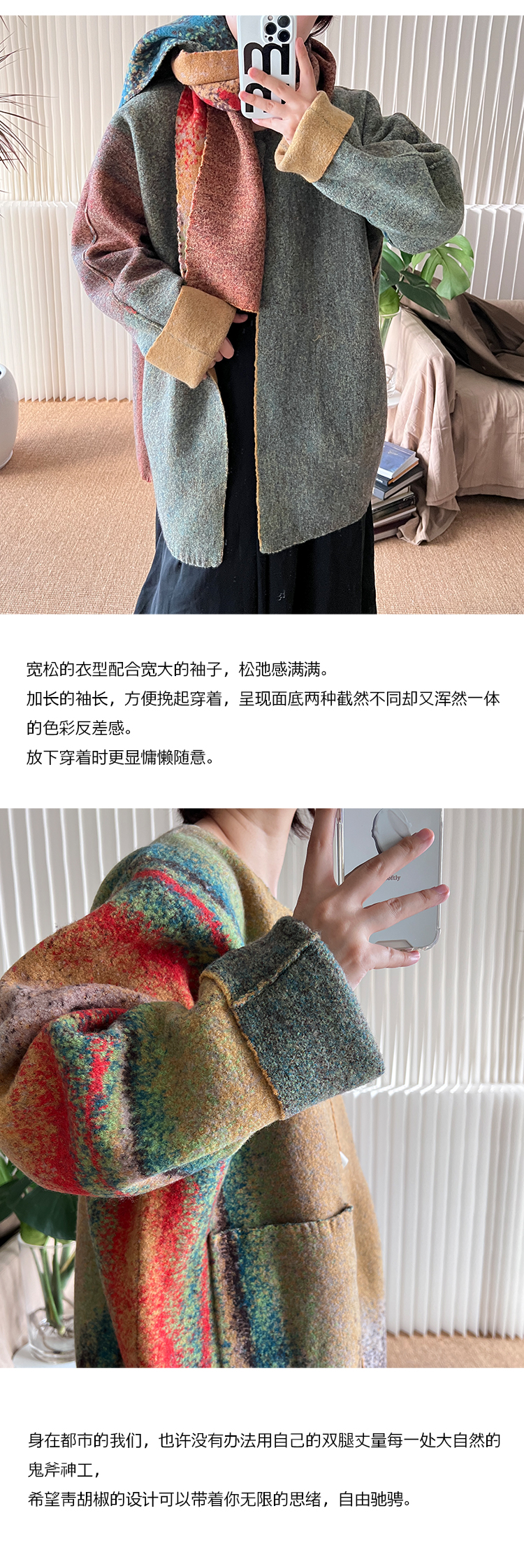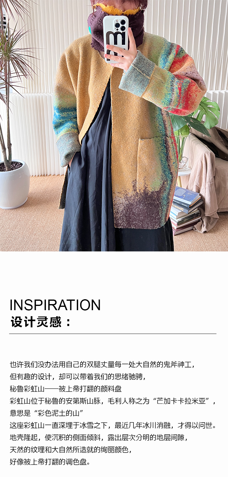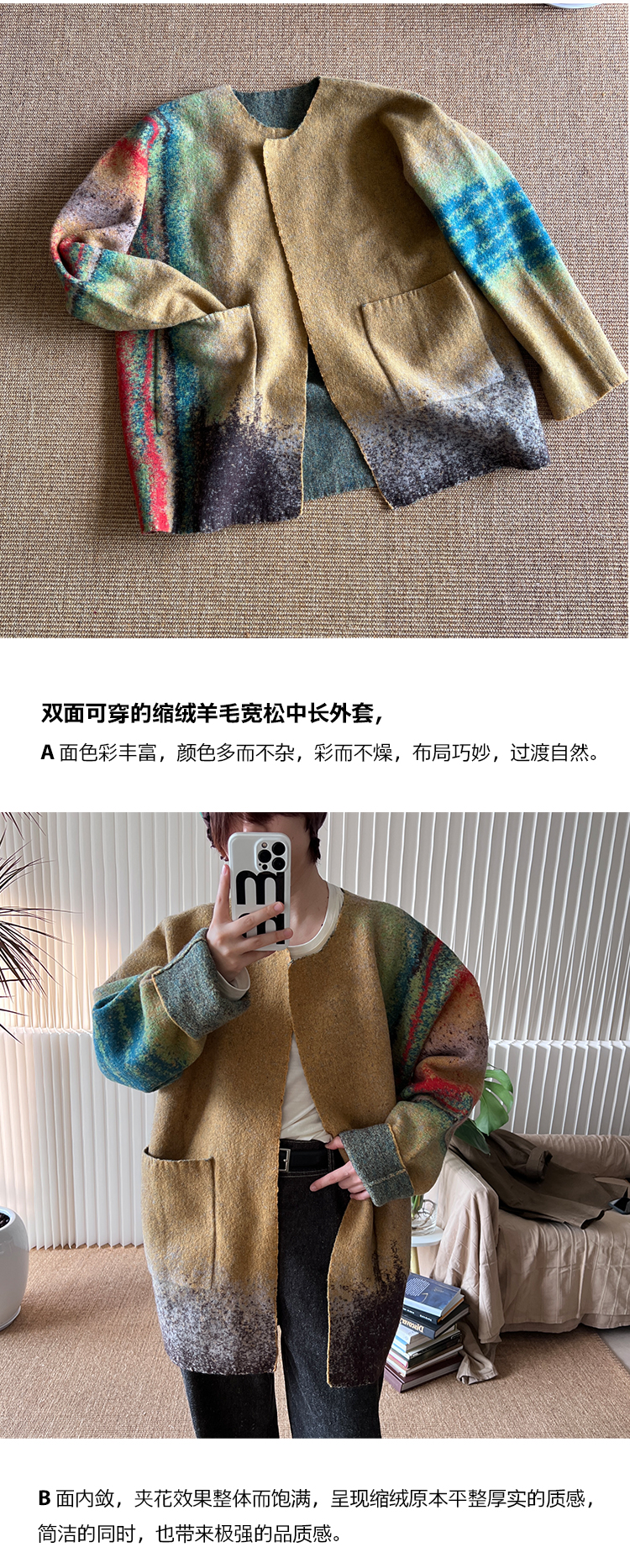 BNC×Azure Pepper冬季双面穿宽松彩色小众自制提花缩绒绵羊毛外套