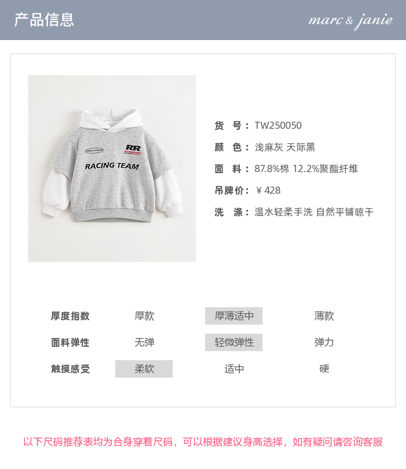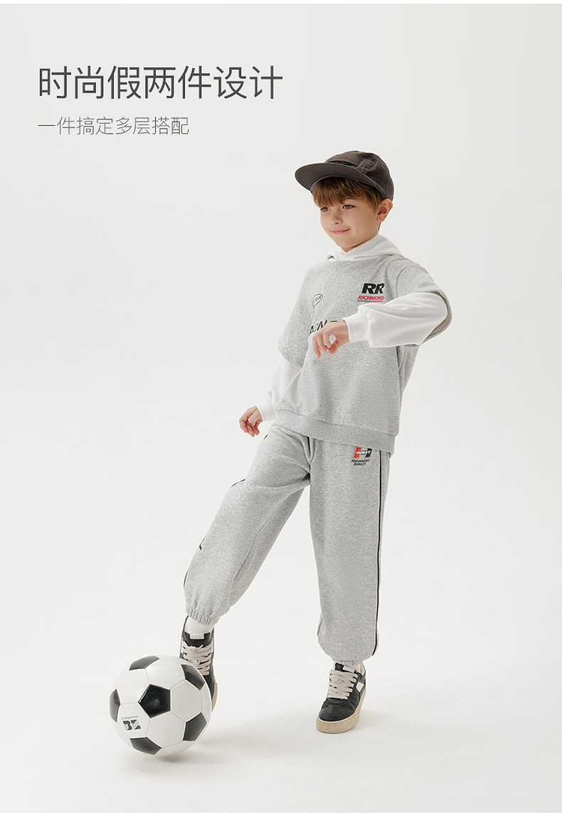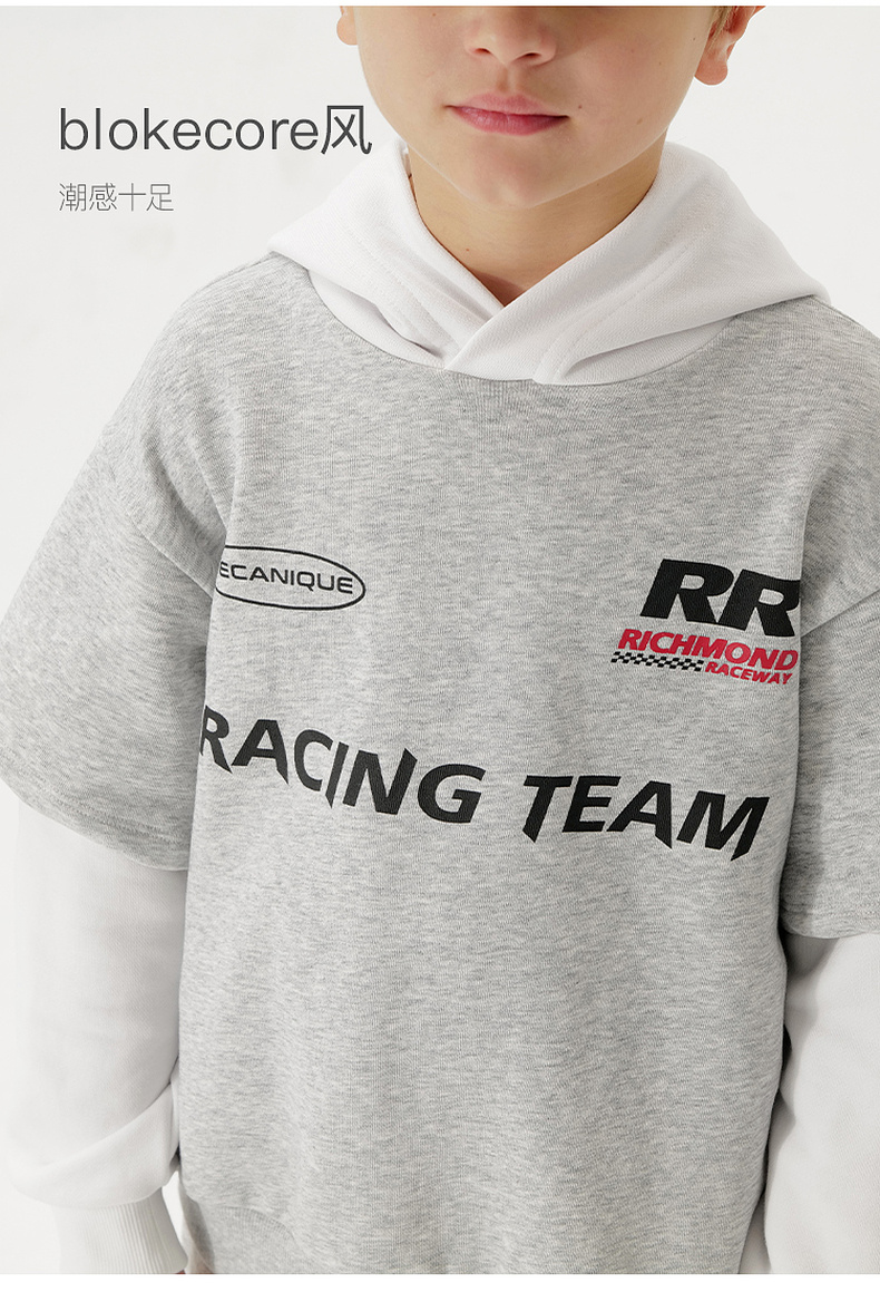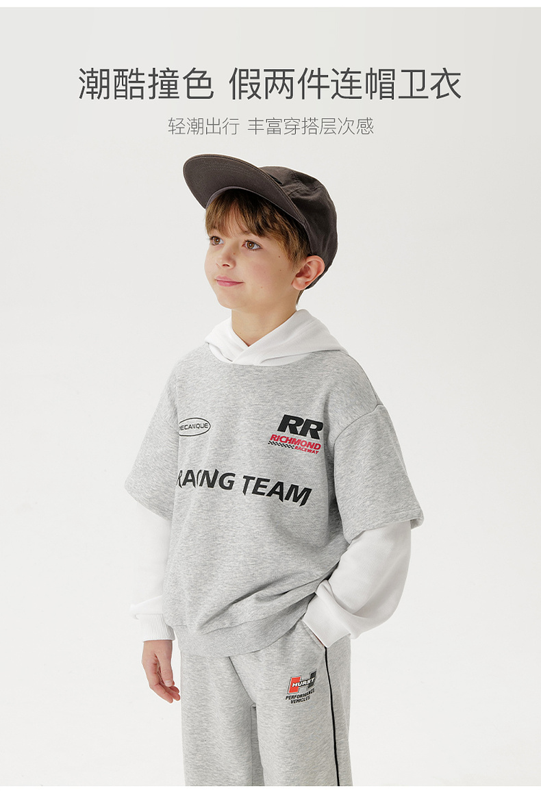 马克珍妮男童潮酷假两件卫衣 儿童连帽上衣2025年春装新款250050