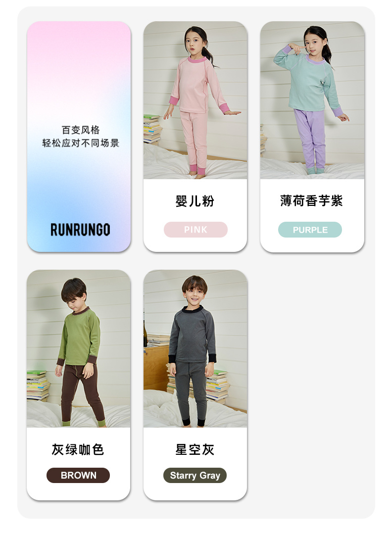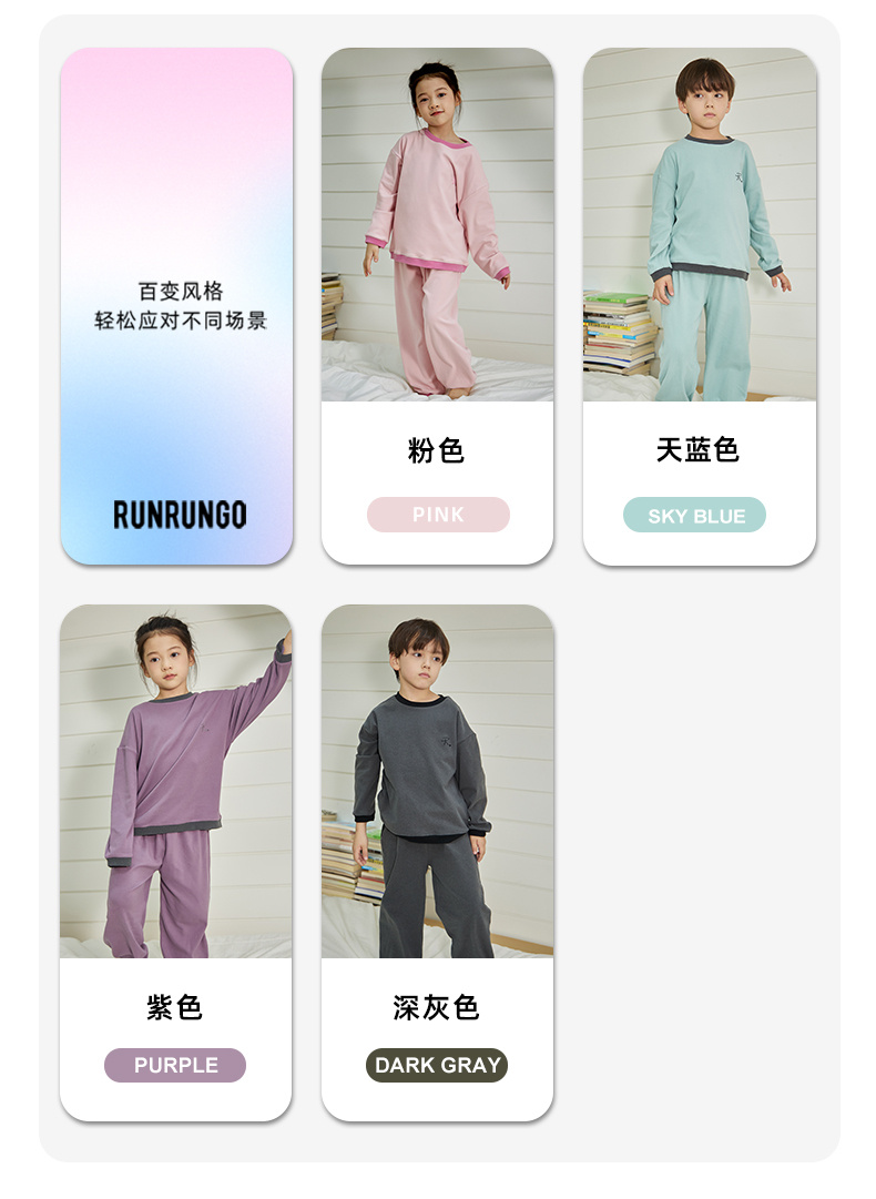 runrungo儿童秋冬换季家居服合集 | 柔光撞色设计、轻盈柔软不厚重、居家穿着舒适、透气保暖【HZ】