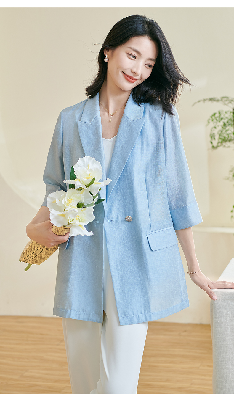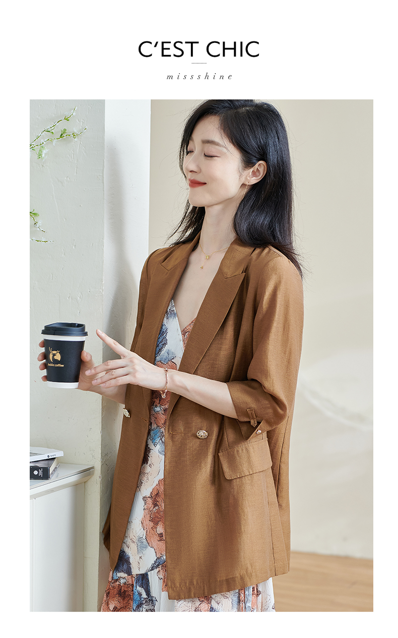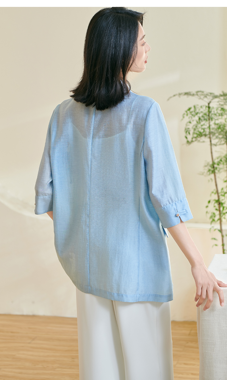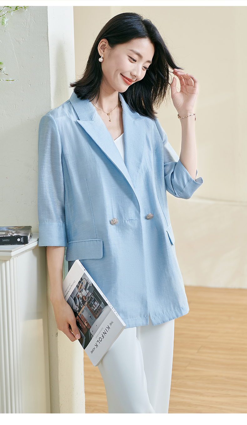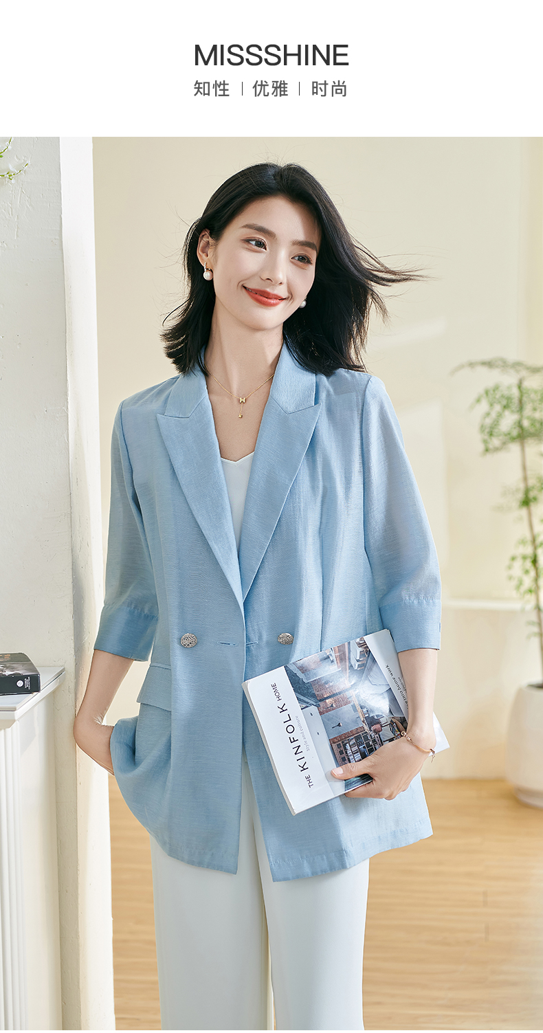 米思阳2026春季新款时尚天丝七分袖外套薄款通勤宽松上衣女0808