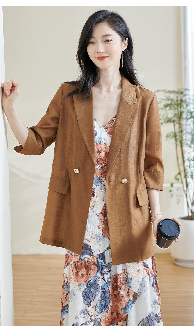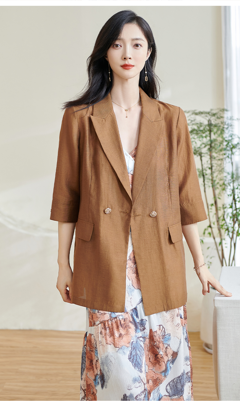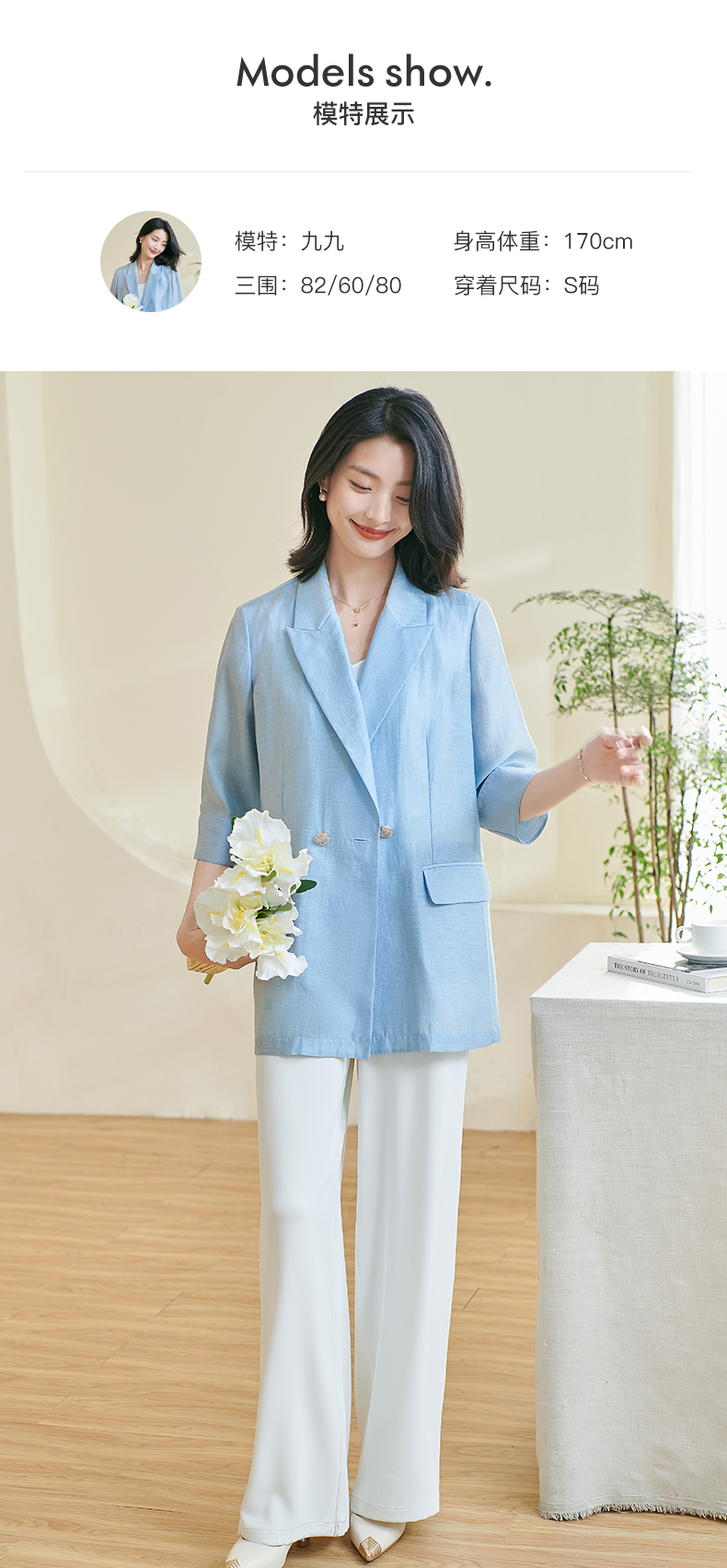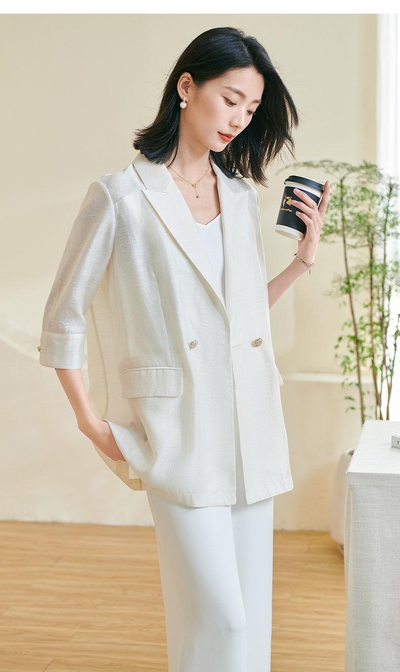 米思阳2026春季新款时尚天丝七分袖外套薄款通勤宽松上衣女0808