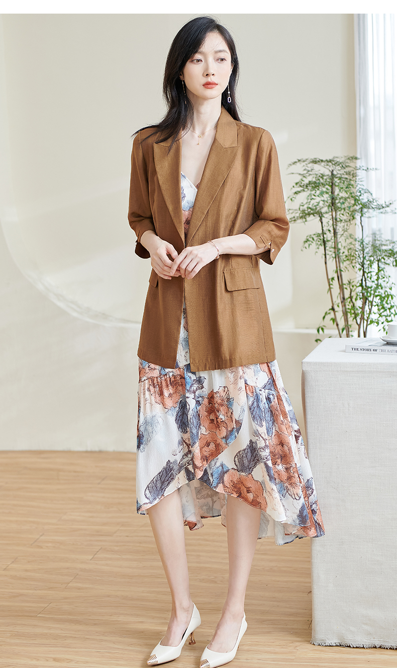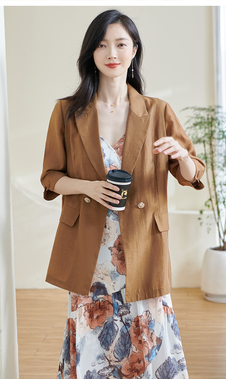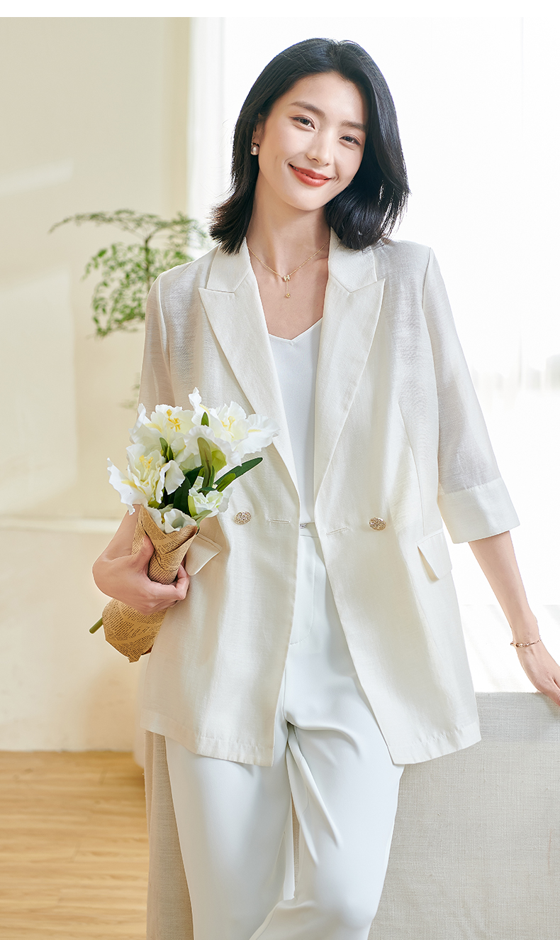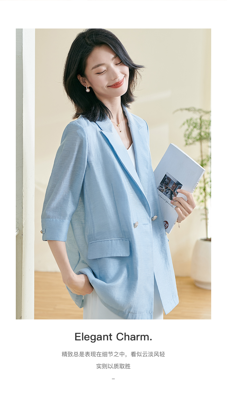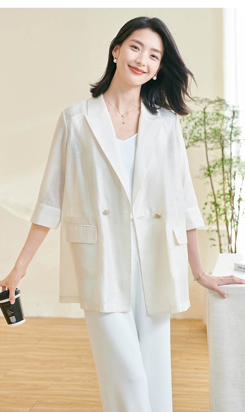 米思阳2026春季新款时尚天丝七分袖外套薄款通勤宽松上衣女0808